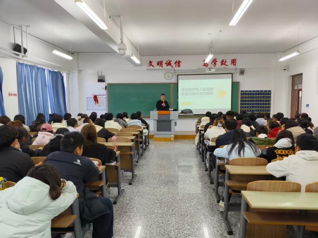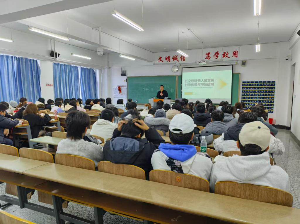 为深入贯彻党的二十届三中全会精神,精准对接党的二十大以来国家战略行业发展需求,帮助学生直观了解国家战略产业前沿动态,进一步明晰就业方向与长远发展目标,10月21日,管理学院柳欣教授邀请科大格羿无人机创新科技有限公司职业生涯规划师、无人机就业指导老师关喆华合作授课。将产业前沿动态与营销实战经验融入课堂,为新生带来了一场理论与实践深度融合的教学盛宴。