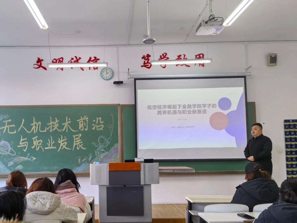 在职业发展维度,讲座重点为在场学子梳理了无人机领域的多元成长路径,以及其与金融领域的跨界融合趋势。主讲人强调,随着无人机技术在金融风控、保险定损等金融场景的创新应用,兼具金融专业素养与无人机技术认知的复合型人才需求日益凸显,这为我校学子开辟了跨学科发展的全新赛道。此外,主讲人还详细解读了低空经济相关岗位类型,鼓励学子锚定自身热爱与专业优势,结合商业价值找准职业切入点,积极投身项目实践,树立“用技术解决真问题”的职业观。