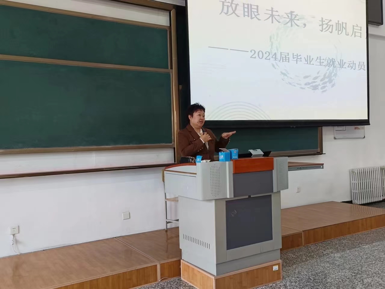 最后,郭爽书记强调了大家最关心的问题:如何应对已经到来的就业季。对于这个问题,郭爽书记从三个方面分别进行详细的阐述。第一部分,对于学生自我分析与建议,十一点建议清晰的讲解了学生如何去应对自我学历以及个人素质的提高问题,希望同学们可以做到知己知彼,百战百胜;第二部分,分析了企业单位对用人的要求,明确的讲解了学生应该如何去体现出自己优势;第三部分,郭爽书记对我院全体毕业生致以最真诚的祝福,寄予最美好的祝愿。