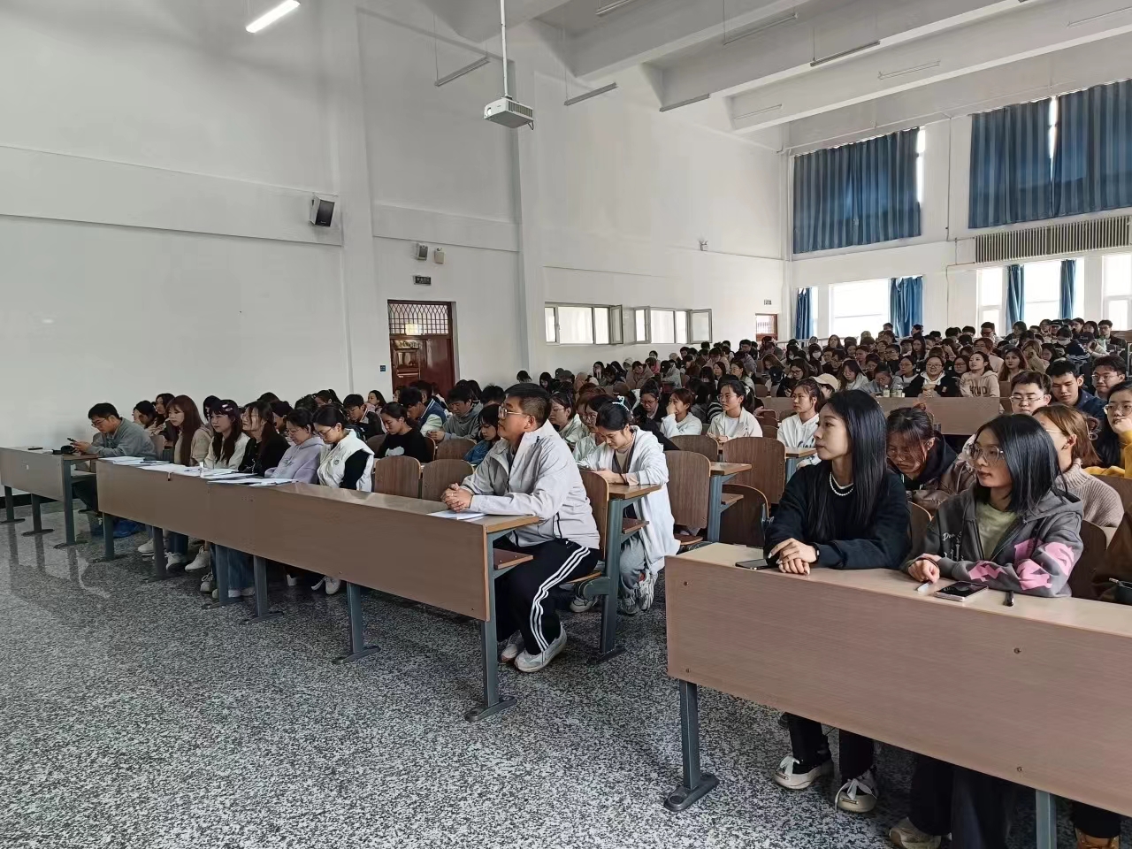 其次,郭书记向大家分享哈尔滨金融学院的往届毕业生的毕业去向及就业率,通过这些数据,给学生们提供了就业方向,从而引起学生思考后续的就业安排规划。