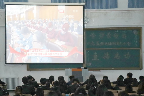 为继承和弘扬五四精神,深入学习贯彻习总书记重要讲话精神,坚决贯彻落实习总书记指示要求,4月30日,管理系于综合楼228室举行了全体学生会干部观看纪念“五四运动”100周年大会直播和回放活动,同时各班级班干部也组织本班同学在教室、寝室利用多媒体、电脑、手机等多种媒介观看此次大会。