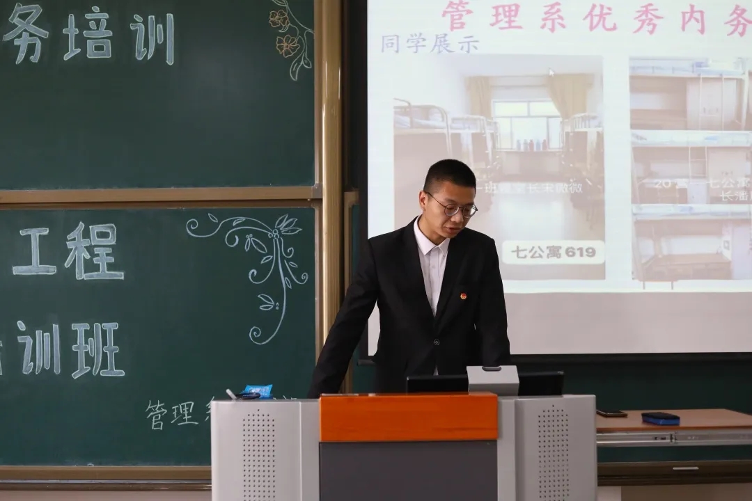 下午13时30分,培训正式开始。会议伊始,主持人对本期青马培训会议的整体情况进行了简要介绍。随即,每位部长开始对此培训会议进行演讲。他们分别从当代年轻人应有的良好品格和校内文化生活两部分进行详细解说,提高了同学们对我系活动开展的正确理解,明确了作为一代青年人应践行的使命与担当。每位部长的精彩演讲使得同学们更加明确自身职责,对同学们的自我提高起到了积极作用,为下一步的工作计划的开展奠定了良好基础。最后,组织部部员田庚、赵海飞进行PPT讲解。此次会议倡导,奏响青春华章,日夜不辍之奋斗是其主旋律。新时代的奋斗者们要坚定奋斗理念,洗去浮华,终现峥嵘!