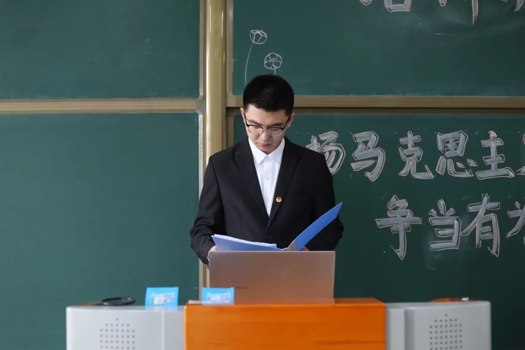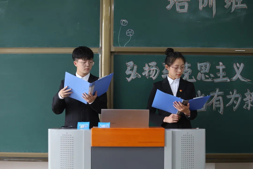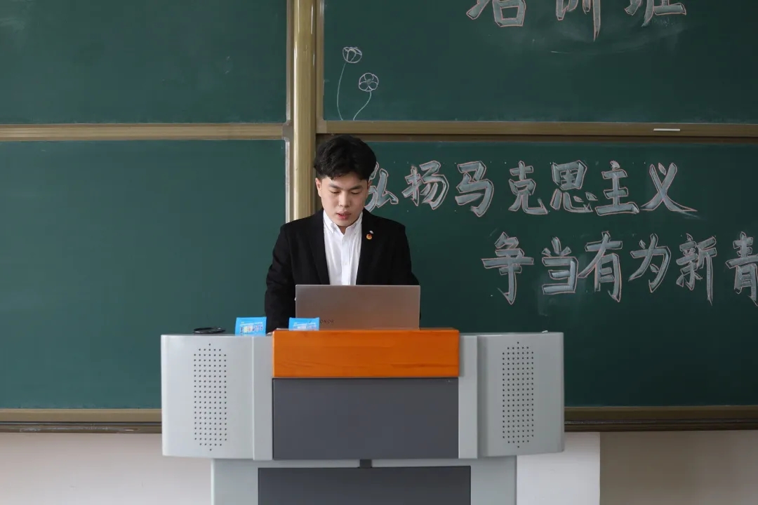 伴随着一首朝气蓬勃的歌曲,此次培训会议正式开始。首先,主持人阐述了本次活动的目的及意义。随即,组织部部员王一涵进行主题演讲。本期学习主题为弘扬马克思主义,争当有为新青年,倡导同学们实事求是,做新时代的“实干家”;敢闯敢干,做新时代的“排头兵”,鼓励青年学生干部坚持原则、敢于斗争,努力成长为可担重任的青年马克思主义者!
