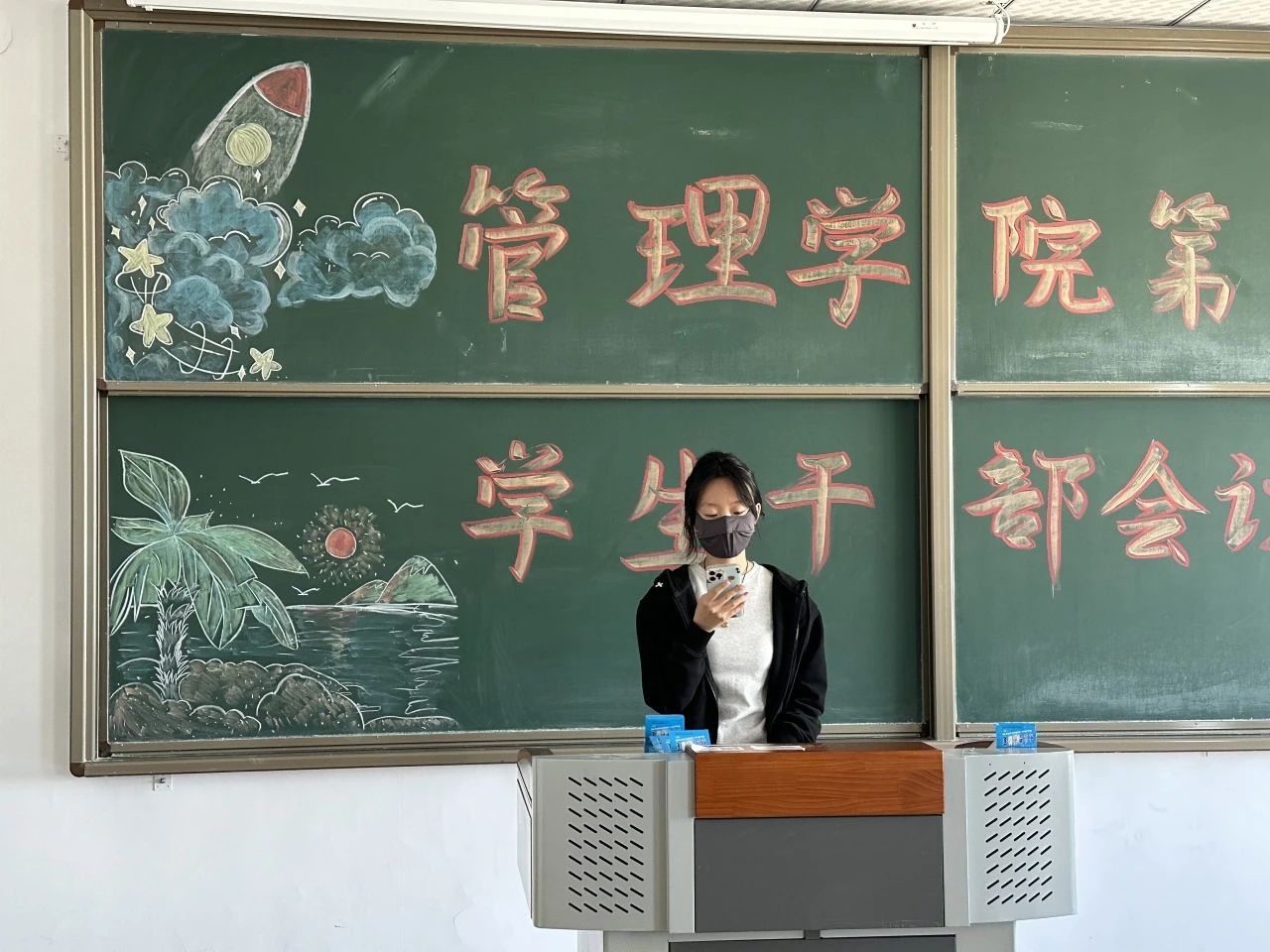 随后,管理学院学生会执行主席孙瑜婕发表讲话,详细阐述了部门精简后的安排,并介绍了合并后部门的具体工作职责,针对运动会的筹备工作补充了细化要求,也希望各部门能够加强交流,在工作上互相配合,讲求合作精神,从而促进学生会更好的发展。