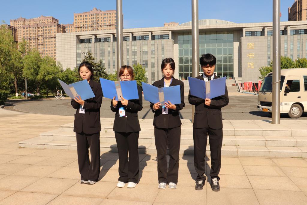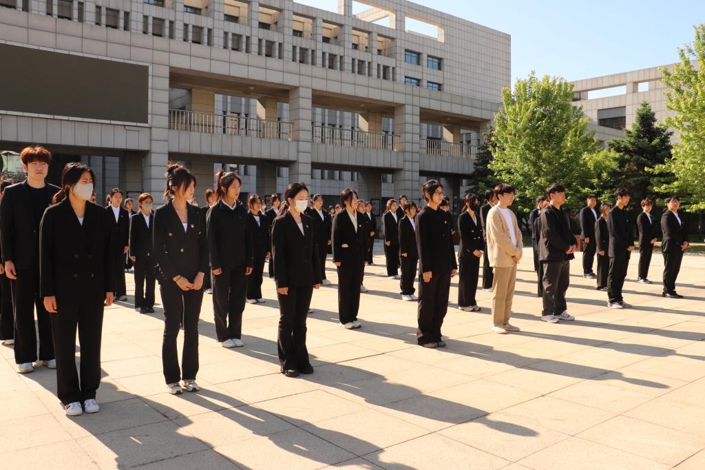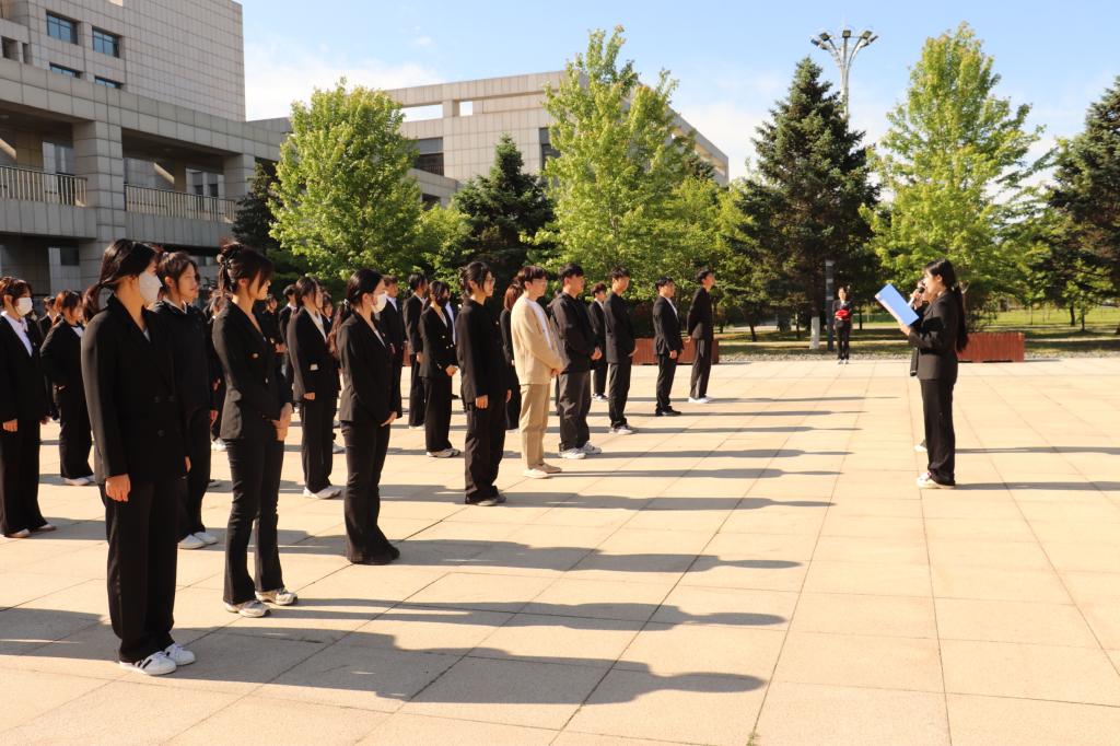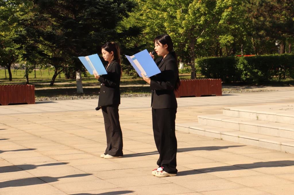 在青春宣言环节,由管理学院四名学生代表带来题为《赤帜励新篇,使命共担》的演讲。他们以革命先辈的英勇事迹为引,讲述了一代又一代奋斗者的感人故事,号召全体师生以专业之能服务国家所需。演讲结束后,全场齐声高唱共青团团歌,激昂的旋律中,“党有号召,团有行动”的青春誓言响彻广场。