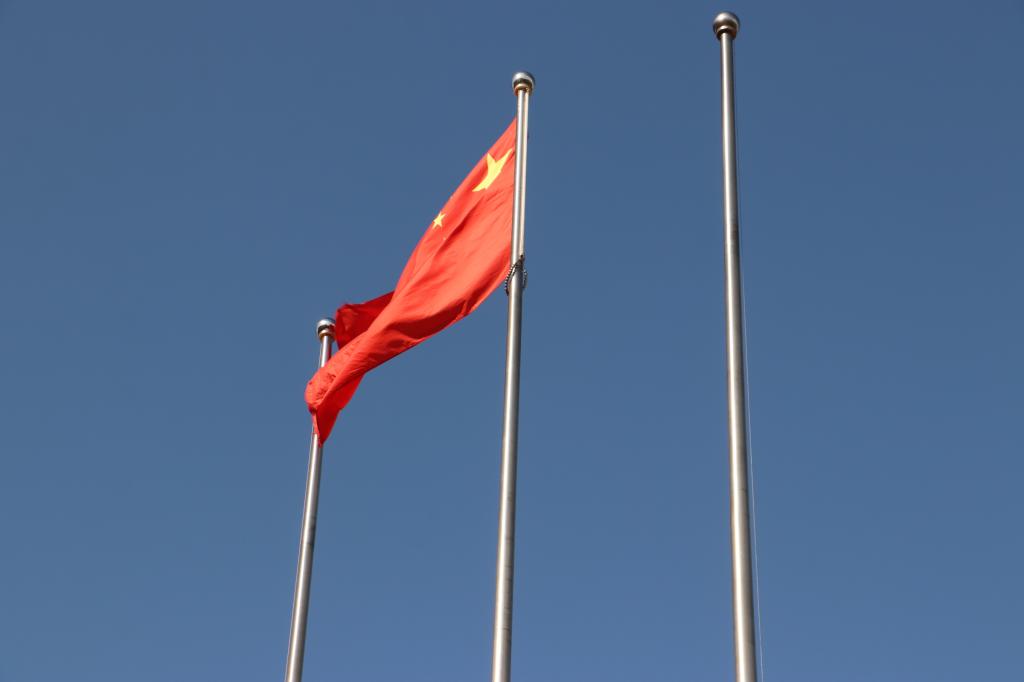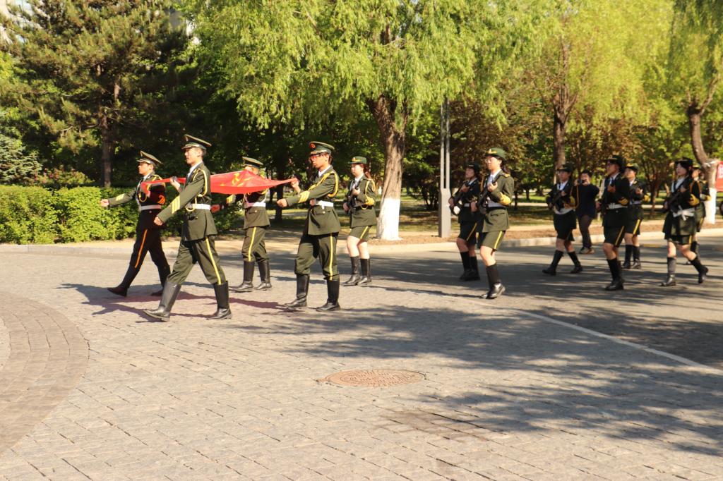 当第一缕朝阳照亮广场,7时25分,升旗仪式正式开始。国旗护卫队步伐铿锵、身姿挺拔,护卫五星红旗入场。