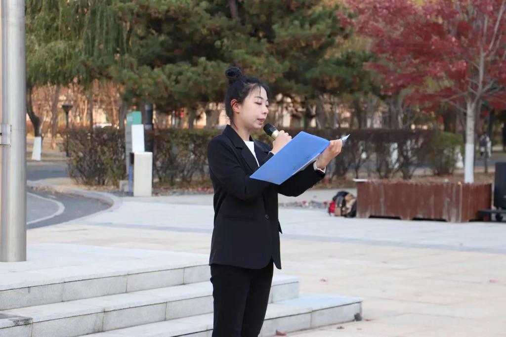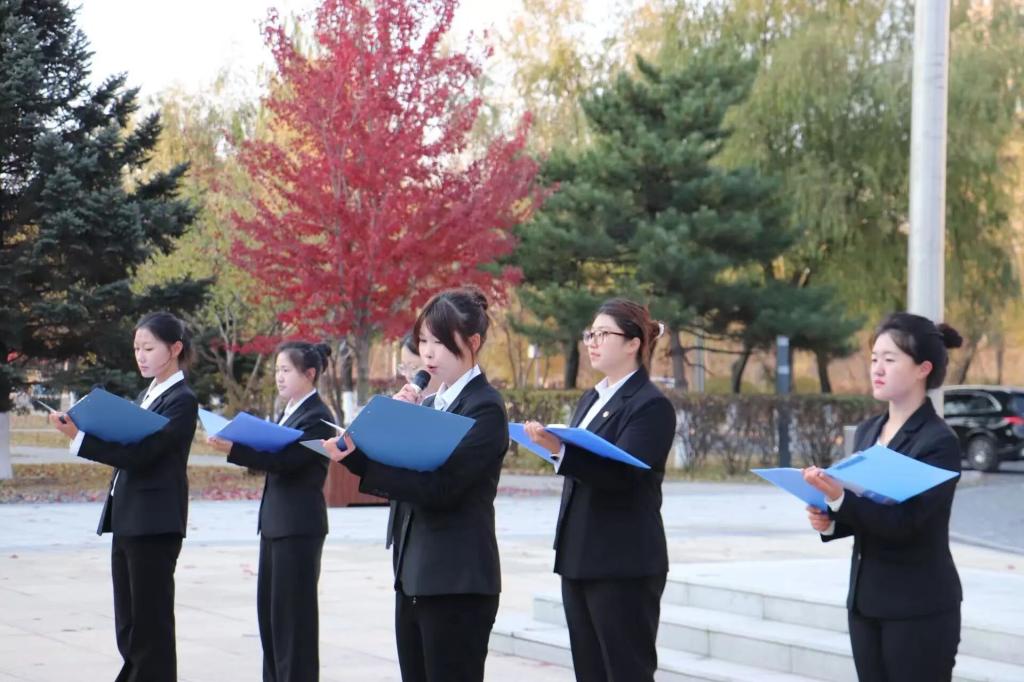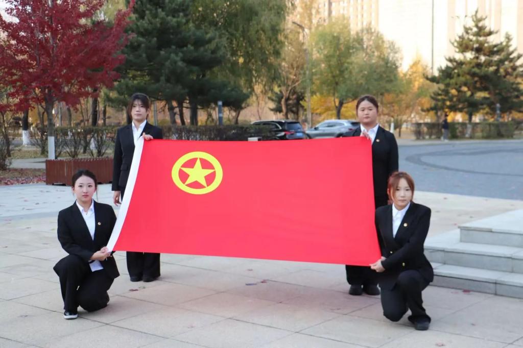 风雨兼程,七十五载;青年如初春百卉之萌芽,屹立于时代的分割线上。为更好的追寻传承方向,契合青年成长与时代发展的同频节奏,管理学院于10月27日上午7时在综合楼前开展“传承薪火,续写华章”国旗下微团课主题升旗仪式。管理学院党总支书记郭爽、党总支副书记赵丹丹、团委书记卞超凡、团委副书记袁泉、组织委员张雄、辅导员李晓晴及各位学生代表共同参与本次活动。