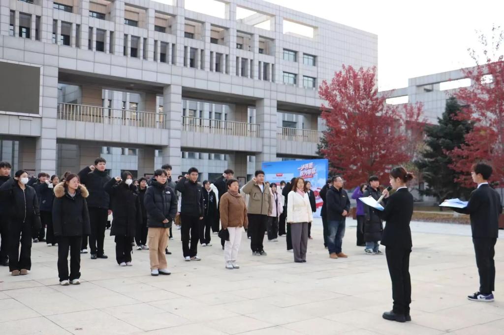 团歌奏响时,阳光洒在管院每个人坚毅的面庞上,红色血脉在歌声中绵延流转。活动最后,我院全体师生庄严宣誓,铿锵有力的声音在空气中回荡,传承的使命如潮涌般在每个人心头激荡。