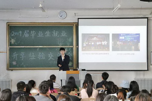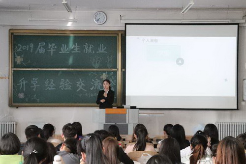 此次会议在大家热烈的掌声中拉开了帷幕,10位优秀毕业生依次上台分享自己的宝贵经验。其中,成功考取研究生的学生代表有赖颖捷、梁爽、崔晓琳、孙巧云;考取公务员的学生代表有刘洋、王晓琴;顺利就业的学生代表有李清洋、白明玉、袁赫、赵晓峰。他们作为优秀毕业生代表和学弟学妹们分享了自己的实习经历、学习方法、以及考公务员的经验、考研心得和进入国企单位的一些要求和建议。传授经验的同时,让更多在校生了解到就业、考研以及考公务员的相关问题和注意事项,同时让他们感受压力,激励他们从现在开始作好准备,作好自己的未来规划。听了学长学姐的经验分享,同学们也纷纷表示受益匪浅。