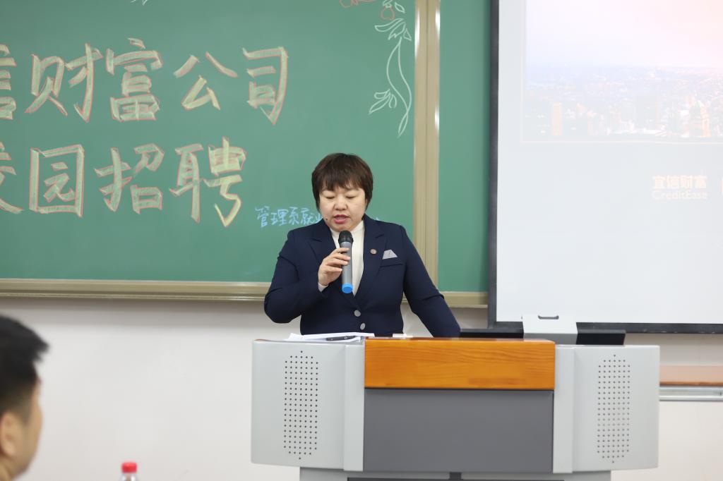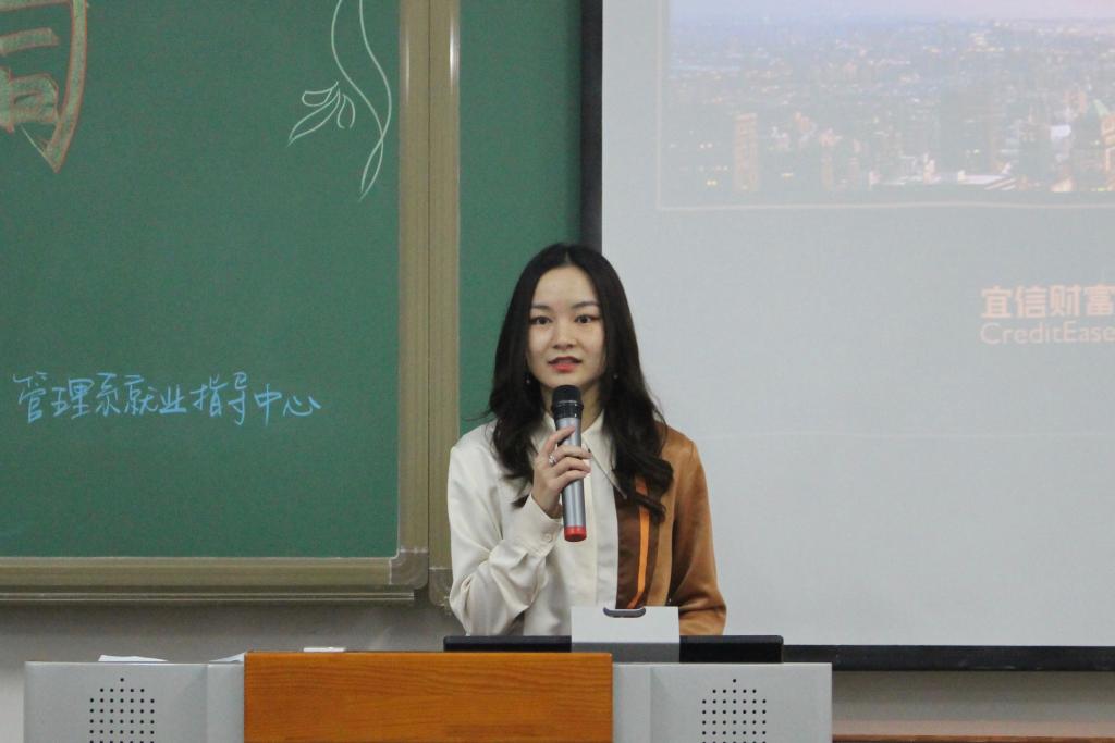 近年来,中国高校毕业生数量逐年增多,大学生面临严峻的就业形势。大学生在毕业后能否顺利就业已成为全社会普遍关注的热点问题。为缓解就业压力问题,管理系携手宜信财富公司于11月25日在综合楼101教室召开专场招聘宣讲会,管理系辅导员老师姜思湛、卞超凡出席此次招聘会。