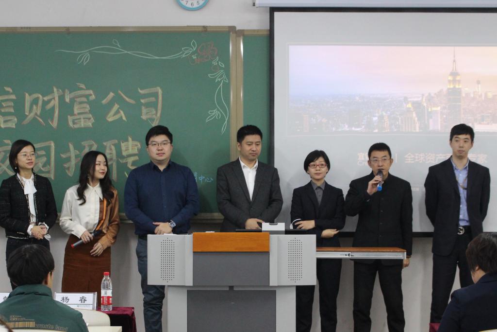 此次招聘宣讲会有42名同学参加。宣讲会首先由负责人以PPT的形式介绍了企业价值观、企业战略、企业传承、客户领域、办公方案、前沿研究、信用模型、合作伙伴、企业殊荣、资产配置、管理机构、人群分层、市场规模、全球性资源。此次宜信财富公司来我院招聘的职位:助理营业部经理。要求:本科以上,金融或经济相关专业;有丰富的销售经验和销售业绩,至少有6-8年外企或名企的工作经验,有私人银行领导者经验者优先;至少2年10人以上的团队销售;拥有并会拓展客户资源,善于沟通并维持其关系,了解客户需求;有市场敏锐度,善于分析客户和产品。拥有基本的专业知识和良好的专业素养,吃苦耐劳,形象佳,能抗压,责任心强。薪酬福利:月工资15000-25000元+绩效、奖金,带薪年假,五险一金,补充医疗保险,餐补,营业部团建,季度峰会,岗位晋升。会议有19人投递了简历。