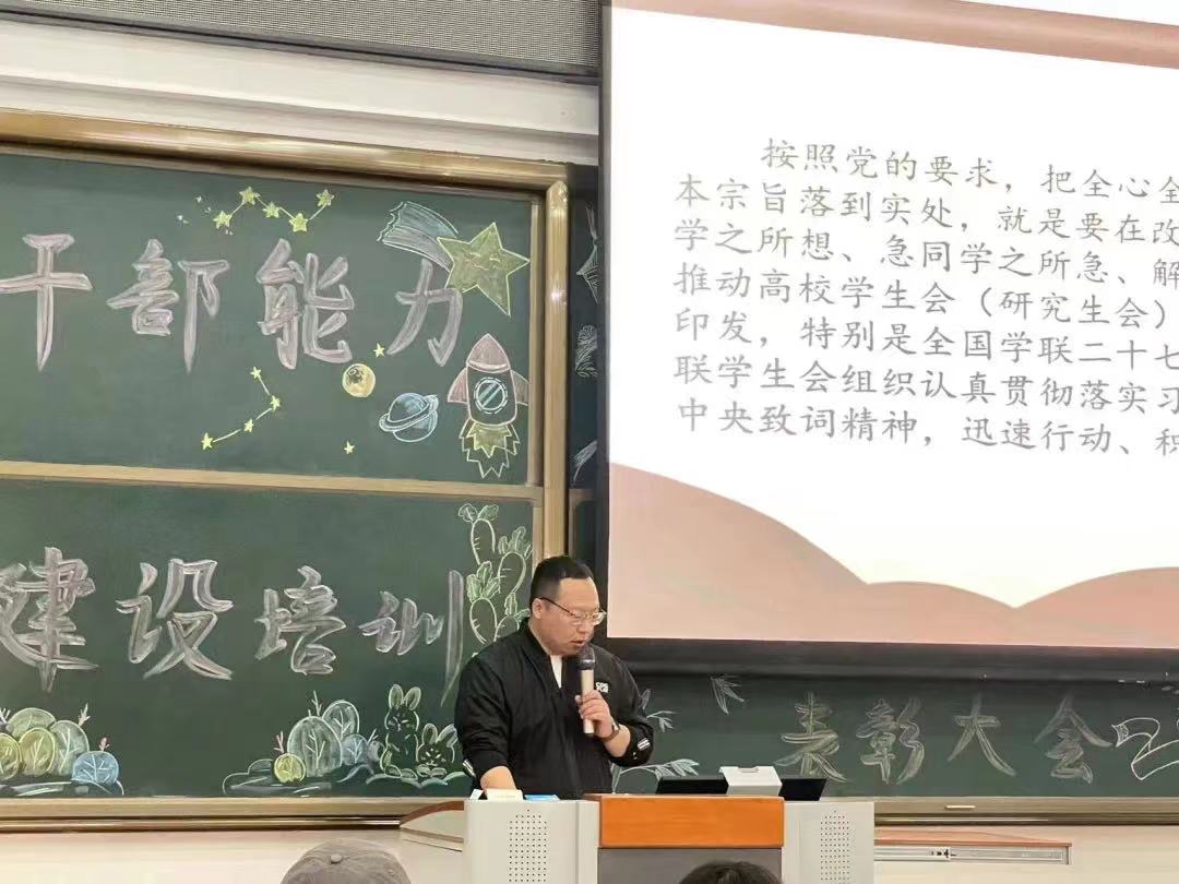 本次学生干部能力作风建设培训以理解学习党的二十大报告的基本内容和核心要义为主题,旨在引导同学们努力做一名有温度、风度、高度的新时代青年,充分发挥表率作用。培训进行中,卞超凡老师要求广大学生要自觉加强学习,不断增强本领,要有良好的道德修养和文化素养,培养高度的社会责任感。