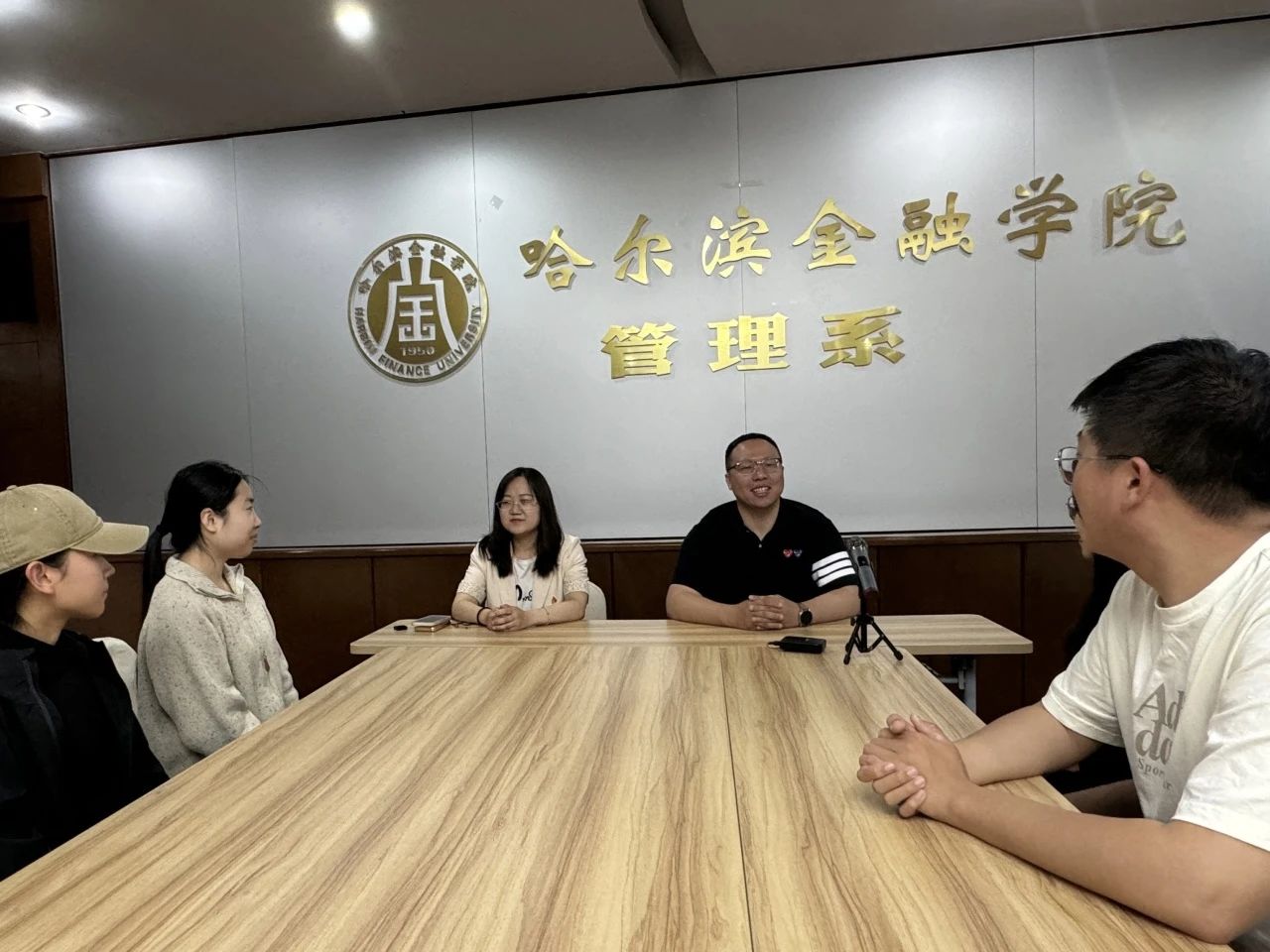 为了切实强化对毕业生的关怀与引导,增强其社会责任感和使命感,加强师生之间的情感纽带,有力推动毕业生以更加昂扬的姿态迈向新的人生阶段,营造温馨和谐的校园氛围。哈尔滨金融学院管理学院于2024年6月5日在经管楼三楼会议室举行了一场意义深远的交流活动。20级毕业生辅导员卞超凡老师和王飞老师与毕业生们进行了充满深情的师生谈心。