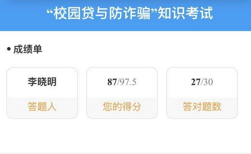 为提高同学们的警惕性和对虚假信息的辩知能力,帮助同学们认清非法集资、校园诈骗的陷阱,有效保证自身权益不受侵害,管理系于5月16日开展了防范“校园贷”网络答题的活动。