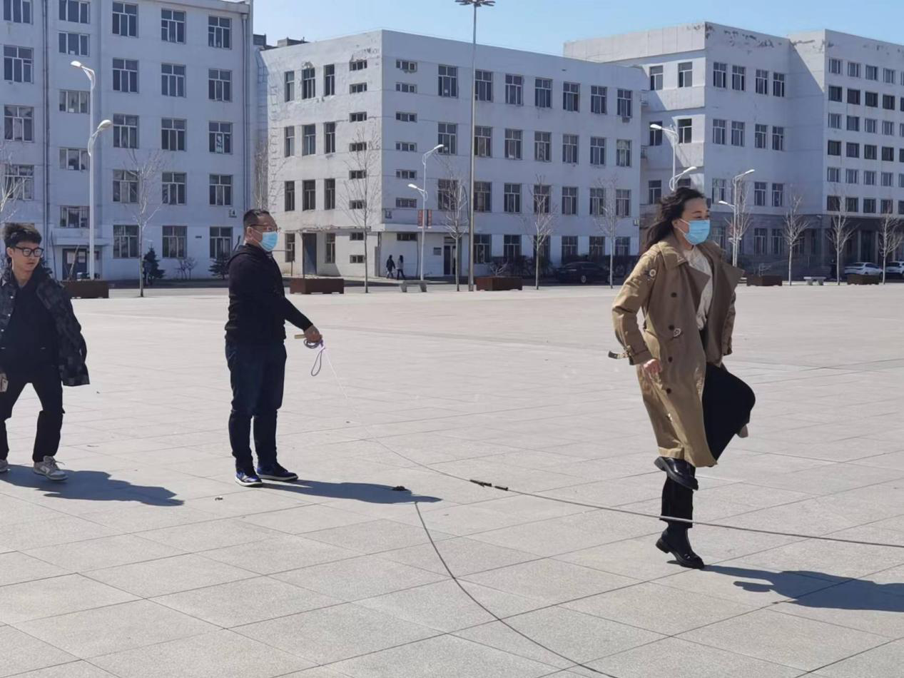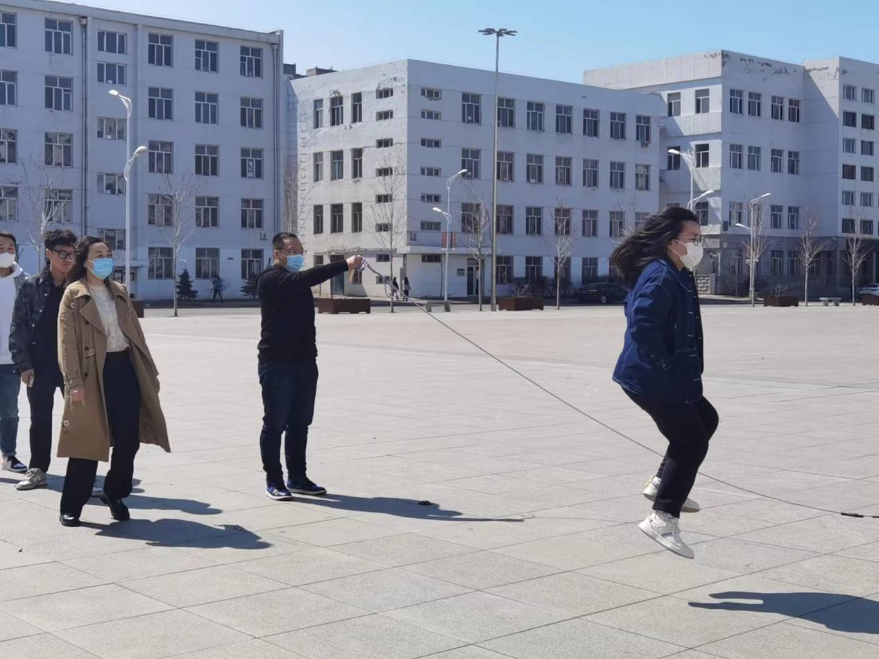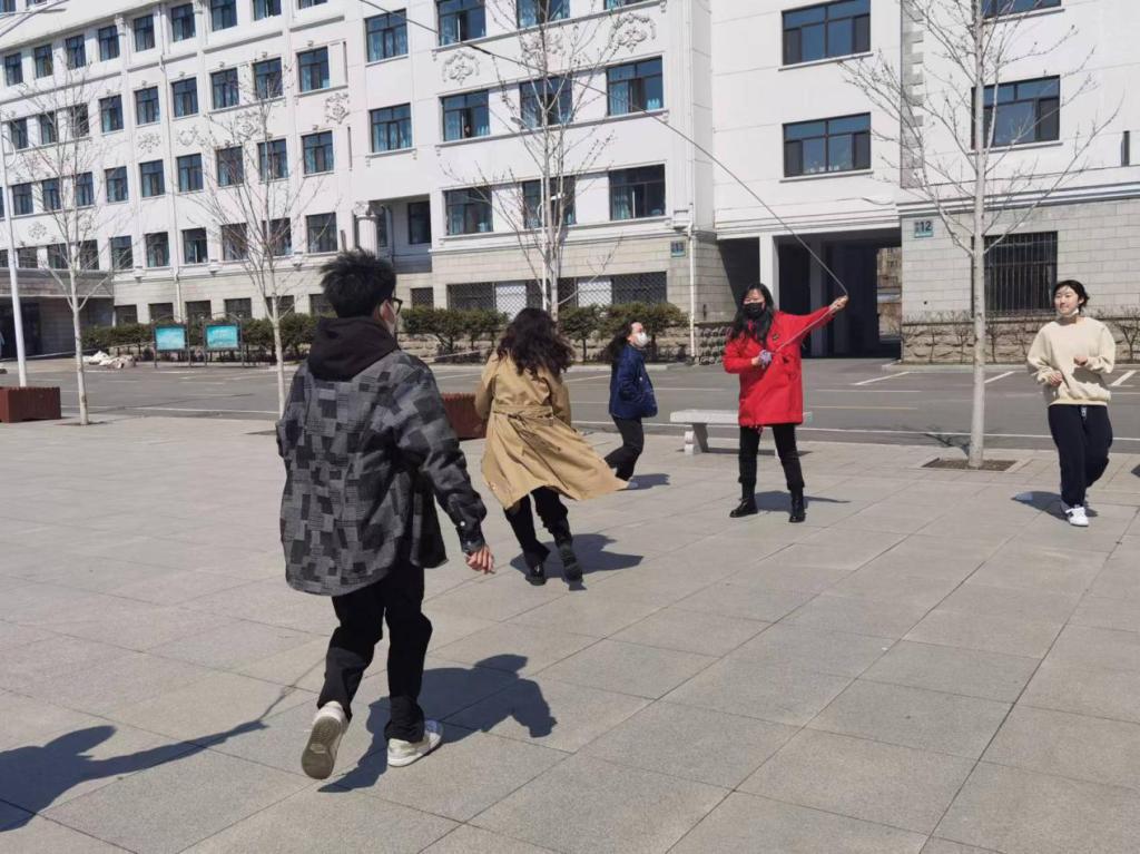 为加强疫情封校期间学生的身体素质,丰富同学们的课余生活,展现大学生的蓬勃朝气,4月14日,管理系留校工作者与同学们一起开展了“跳大绳”活动。管理系党总支书记赵智男及团总支副书记卞超凡,辅导员老师王白璐、赵玉莹参与到此次活动中。我系留校辅导员严格落实学生外出返校隔离政策,王白璐于今天上午到校门口迎回就医后返校的学生,陪学生在校医院完成核酸后,将学生送往培训中心隔离,体现了管理系留校工作者对待学生工作的责任与担当。下午,管理系留校辅导员与同学们相约礼融广场,进行了跳大绳活动,一次次的跳跃均是青春活力的体现,丰富了封校期间同学们的校园文化生活。此次活动展现了我系学生的青春活力,帮助大家缓解压力、舒缓心情,增强了同学们的身心健康,传递了温暖与力量。曙光终将驱散阴霾,我们静待春暖花开。