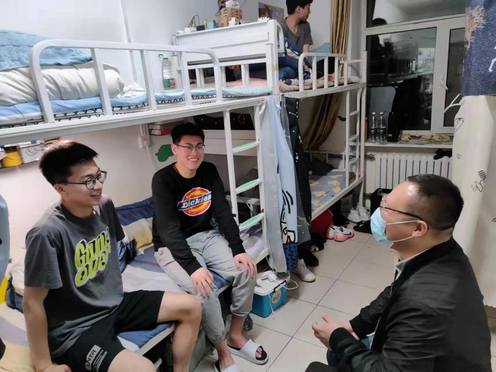 为保证疫情期间学生们的线上学习质量,提高同学们学习的自觉性,做到防疫学习两不误,4月12日,管理系留校学生工作者进入宿舍查看学生疫情封校期间网课情况。管理系党总支书记赵智男及团总支副书记卞超凡,辅导员老师王白璐、赵玉莹深入各学生寝室。留校辅导员分别深入各自学生寝室,检查同学们的上课状态,并利用下课时间与同学们进行交谈,了解同学们近期的学习情况,叮嘱同学们执行学校防控要求,注意寝室卫生。随后,留校学生工作者进入食堂,维持学生们在用餐、取餐时的秩序,保持好间距。管理系学生工作者用爱坚守岗位,用关怀与温暖,用细致与耐心为同学们解决问题。辅导员深入寝室与食堂这一举动,不仅拉近了与学生之间的距离,也进一步提高了学生的自我管理意识及安全意识。在这场没有硝烟的战场上,管理系一直坚守战“疫”一线。