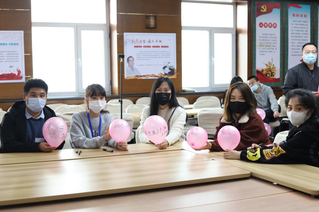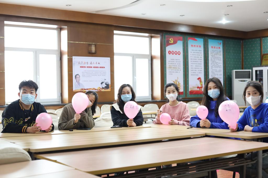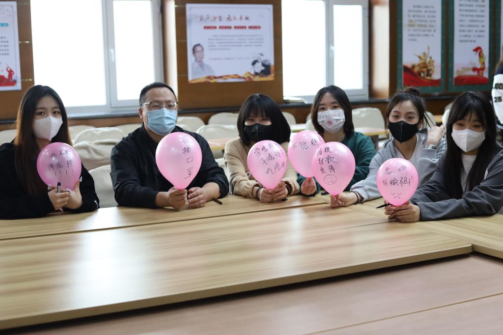 为保障疫情防控期间大学生心理健康,营造良好的校园氛围,4月11日,管理系留校学生工作者和同学们组织了一场“释放心理压力”活动,管理系党总支书记赵智男及团总支副书记卞超凡,辅导员老师王白璐、赵玉莹参加了此次活动。三位留校辅导员老师分别与我系学生在食堂用餐、交流,通过多渠道开展学生的思想政治教育工作。辅导员王白璐在巡逻中提醒同学雨天小心路滑,注意上下车安全。此次活动,留校学生工作者和同学们通过把自己近期的烦恼、压力写在气球上,再一起将气球踩爆的方式,释放内心压力。大家一起以轻松、幽默、正能量的形式释放压力,收获快乐。通过本次活动,舒缓了学生们的焦虑情绪,进一步坚定了同学们抗击疫情的信念和决心。我系学生定会全力配合学校,做好疫情防控期间的相关工作,共同筑牢校园战“疫”防线。