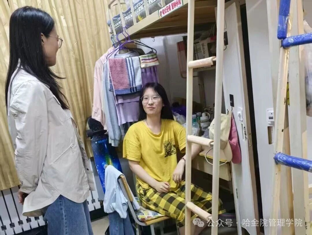 除守住安全底线外,老师们的目光更聚焦于学生的生活细节与精神面貌:他们观察公共区域的使用协调度、物品收纳的规整度,从日常场景中读懂学生的集体生活状态。对大一新生,格外关注他们融入集体生活的进度。走访发现,绝大多数宿舍环境整洁温馨,有的以简约绿植点缀空间,有的精心规划学习角,浓厚的向上氛围与饱满的精神状态,展现出学子们对新学期的期待。查寝活动充分体现出管理学院“管理育人、服务育人”的细致入微。