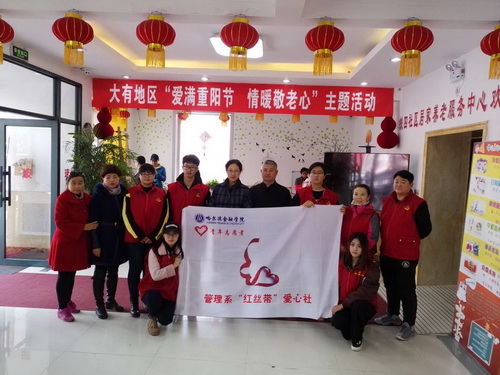 为丰富老年人的精神生活,弘扬尊老敬老的优良传统,哈尔滨金融学院管理系红丝带爱心社于10月16日重阳节之际受邀参加以“爱满重阳节,情暖敬老心”为主题的敬老义诊活动。