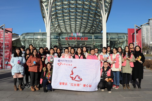 为让更多的人了解自闭症儿童,引起社会大众对自闭症儿童的广泛关注。哈尔滨金融学院管理系红丝带爱心社于2018年11月17日受邀参加了由哈尔滨广播电视台、哈尔滨红博中央公园共同举办的“听见色彩”大型公益义卖活动。