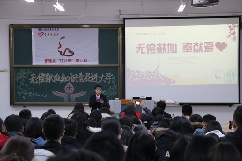 为培养大学生的责任感和使命感,增强大学生对无偿献血知识的了解,使大学生树立正确的无偿献血观念,哈尔滨金融学院管理系红丝带爱心社于2018年11月26日在新教124召开了“无偿献血知识普及进大学”的主题会议。管理系团总支副书记兼2016级辅导员卞超凡参加会议。