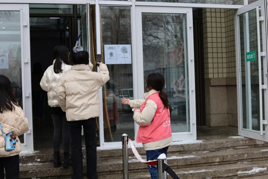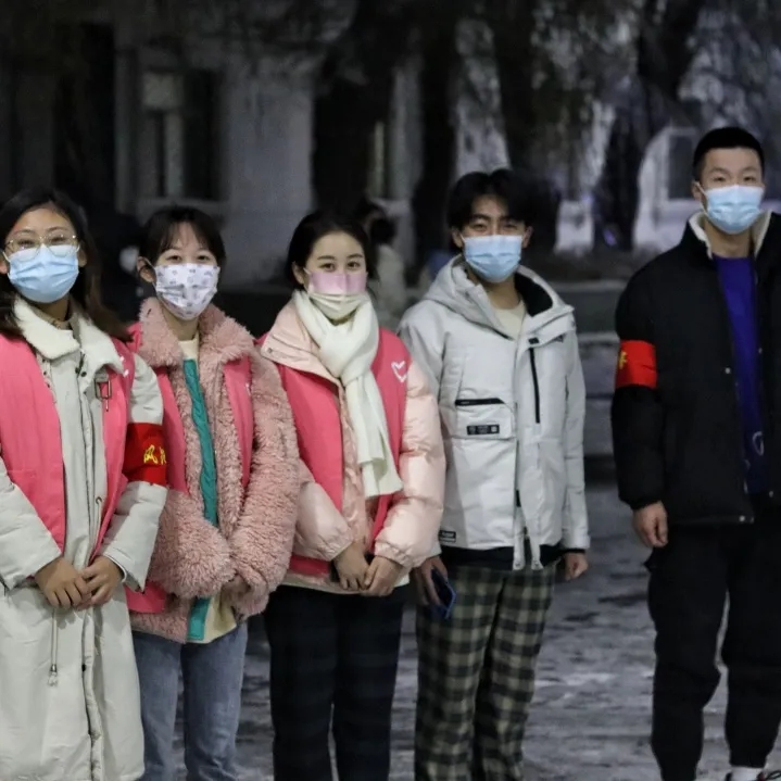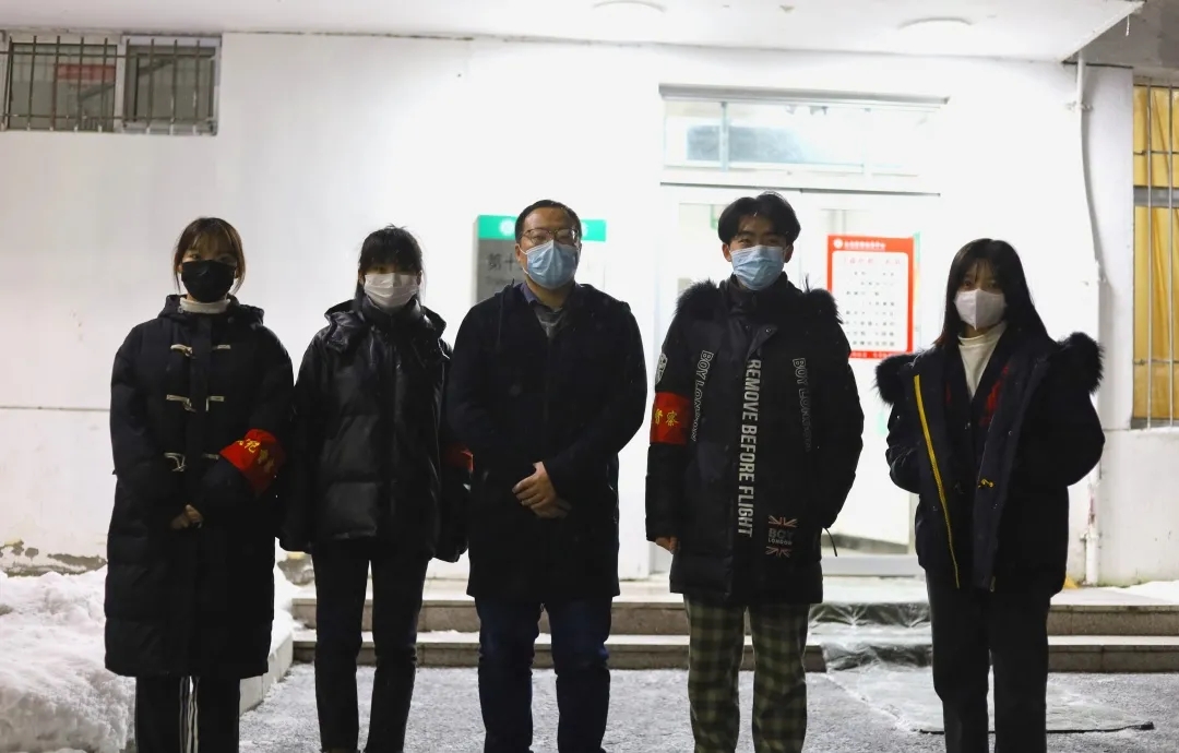 “同学你好,在校园里请戴好口罩。”“进入食堂请扫码测温。”“排队取快递的同学请保持一米间距。”宿舍楼下、校园路上、食堂门口都有管理系疫情防控队员的身影。红袖标是他们的责任,粉马甲是他们的使命,一颗颗火热的心让寒冷的冬天不再布满阴霾。不惧严寒再出发,防疫抗疫,“管理人”在行动!