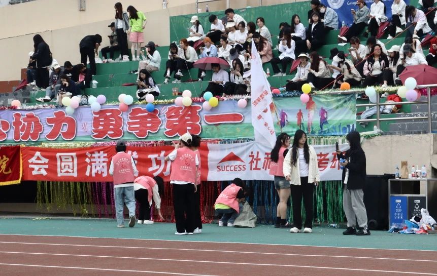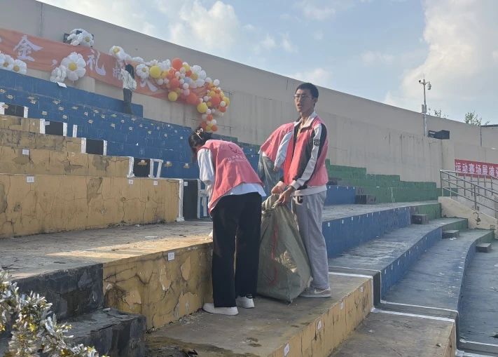 为增强当代大学生志愿服务意识,弘扬志愿精神,提高同学们的环保意识,激发同学们加入到志愿服务中,协助运动会顺利开展。哈尔滨金融学院管理学院红丝带爱心社于2024年6月2日、3日在新体进行了运动会会场清扫志愿活动。