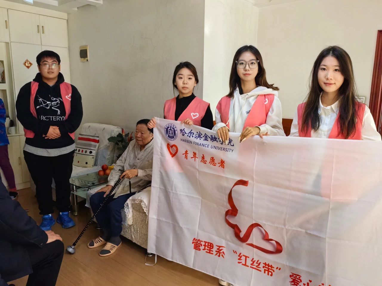 为全面贯彻落实党的二十大精神,积极响应团中央“金晖行动”号召,奋力推动新时代青年志愿者事业高质量发展,弘扬中华民族尊老、敬老、爱老的传统美德,哈尔滨金融学院管理学院红丝带爱心社于2023年10月19日在哈尔滨市香坊区白毛小区进行了拜访慰问离退休老干部活动。管理学院团总支副书记卞超凡老师出席了此次活动。