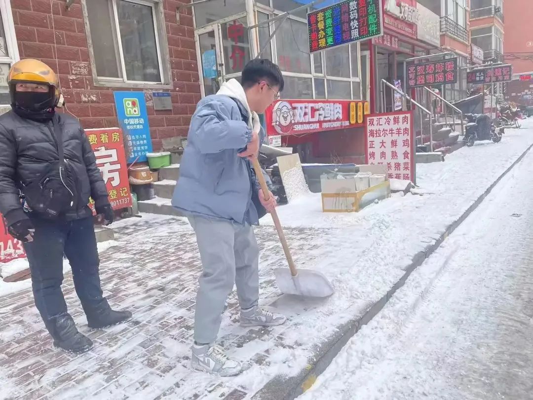 迎着春日的和风,管理系的芸芸学子化身志愿者,准时来到约定地点集合签到,一同前往安居社区开始"扶幼扶老"活动。在活动中的志愿者们,或是主动拾起路上的垃圾,保持路面的干净整洁,或是帮助环卫工人扫雪,以微薄之力为他们送去些许温暖,又或是小心搀扶老人在湿滑的雪道上缓缓前行,聆听他们的故事,为老人送去春日的爱与陪伴,亦或是帮助有需求的老人推车、拎物品,为老人的安全增添保障,充分诠释了志愿服务既是"助人",亦是"自助",既是"乐人",也是"乐己"的情感。
