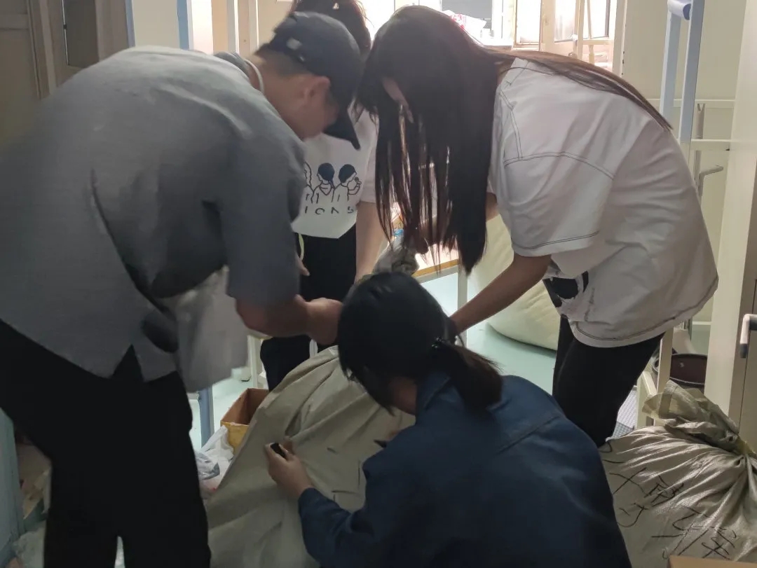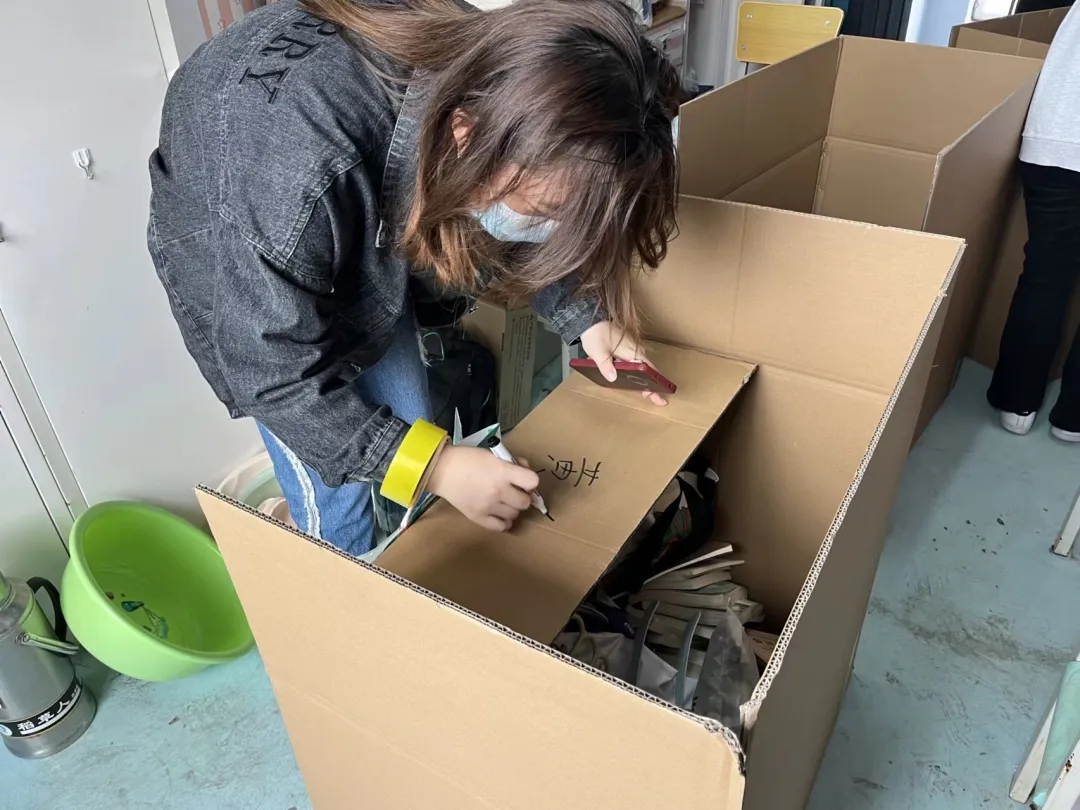 在管理系副处级辅导员老师王长奇老师和团总支副书记卞超凡老师的带领下,全体学生会志愿者均参加此次打包活动,首先将志愿者分好组,选出各组负责人,负责人与大四学长学姐取得联系,带领成员打包行李的同时与大四毕业生全程进行视频通话实时沟通,整个活动参与者热情高涨,与同学对物品一一确认,实现了“一人沟通,一人打包”的配合工作,并根据物品类型放入纸箱或者行李袋中。