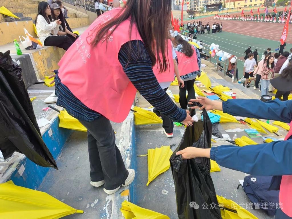 为保障第三十三届运动会顺利开展,营造干净整洁的比赛环境,管理学院红丝带爱心社志愿者团队于5月22日至23日在运动会场地开展志愿清扫服务活动,以实际行动践行“奉献、友爱、互助、团结”的志愿精神,为本次体育盛会筑起坚实后盾。