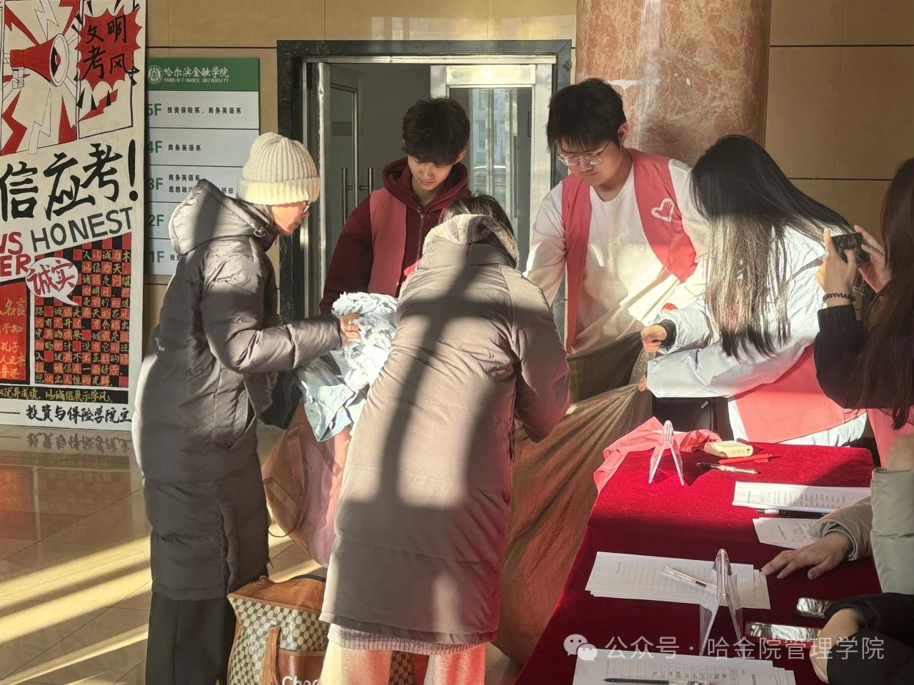棉衣裹爱传千里,善念织情暖万冬。为培养同学们的公益意识和社会责任感,同时传递社会温暖与关爱,管理学院红丝带爱心社一场汇聚爱心与温暖的捐衣活动于12月18日下午13时至15时在经管楼一楼大厅开展,我院学子共计139人踊跃参与,共同为社会贡献出一份自己的力量,为寒冷的冬日增添了一抹温暖的亮色。