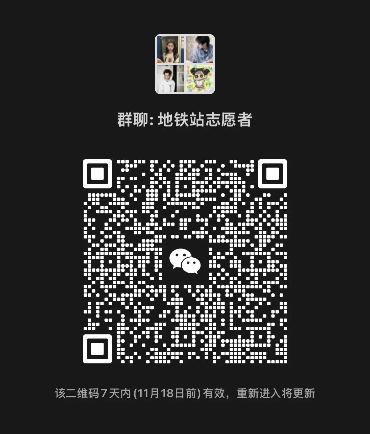 期待有情怀、有担当的您,加入我们,以青年之热忱,为这座城市的地下动脉,注入一缕最温暖的清风。有意愿的同学扫码进群。