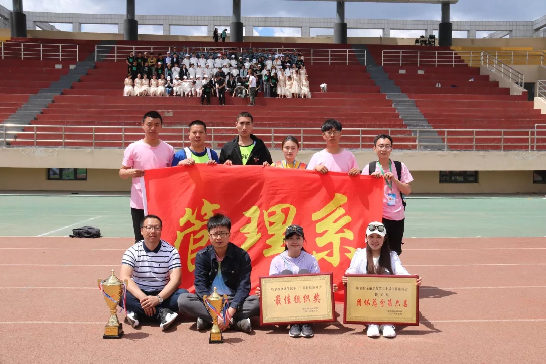 在个人赛中,管理系运动员竭尽所能,奋力拼搏;在团体赛中,管理系运动员精诚合作、团结一心。最终,管理系二队以团体总分第一名的成绩卫冕冠军,管理系一队也取得团体总分第三名的好成绩,管理系更是荣获此次运动会最佳组织奖。在此次运动会上,管理系所取得的优秀成绩与观众席间昂扬的精神风貌、工作人员周全的督导安排、拉拉队们震天的助威呐喊是密不可分的。运动竞技不仅仅是意志的较量、速度的挑战,更是对团体凝聚力的考验,管理系学子们在竞技中团结一心,共同进步,不断彰显青春风采。