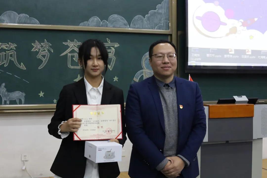 我们的征途是星辰大海,我们的梦想是遨游九天。2021年11月8日的凌晨,神州十三号航天乘组密切协同,出舱活动取得了圆满的成功。这无疑又为中国航天史添上了浓墨重彩的一笔。为了丰富校园文化生活,全面增进同学们对PPT的了解,提高同学们对PPT的认识,锻炼同学们文字口头表达能力和提高自身的综合素质,管理系第五届PPT设计演讲大赛以“飞天揽月,筑梦苍穹”为主题展开。大赛于2021年12月1日18时在综合楼225成功举办。管理系团总支副书记卞超凡老师携学生会主席团成员牛靖博,卞溟悦等出席本次比赛。