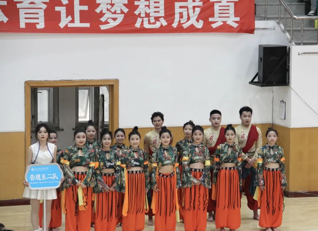为响应学院重视学生体质健康发展的号召,积极推进阳光体育活动,为学生提供展现自我的舞台,促进全校师生在体育锻炼中享受乐趣,实现体育教学的创新与培养,推动体育和美育共同发展。哈尔滨金融学院于2023年4月19日下午15点在第二体育馆开展健美操比赛,管理系团总支副书记卞超凡老师和主席团全体成员观看了本次比赛。