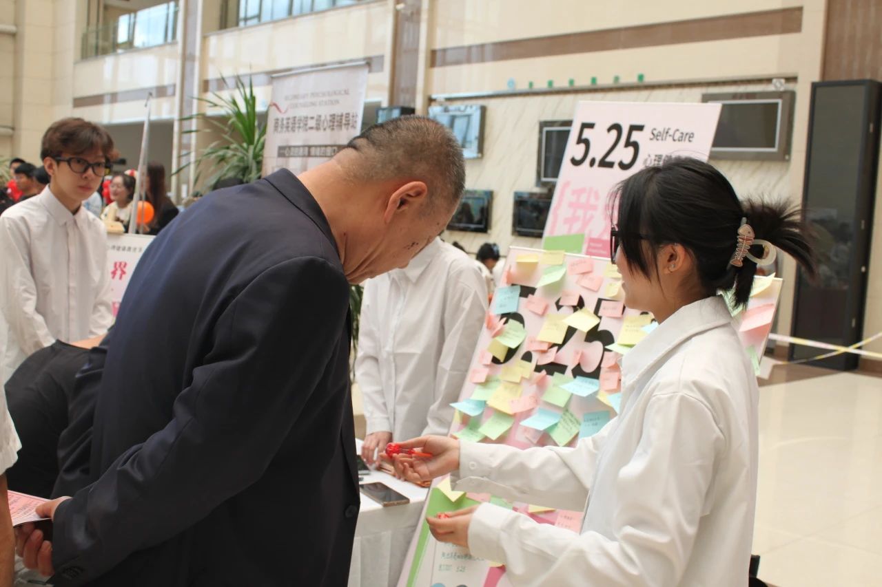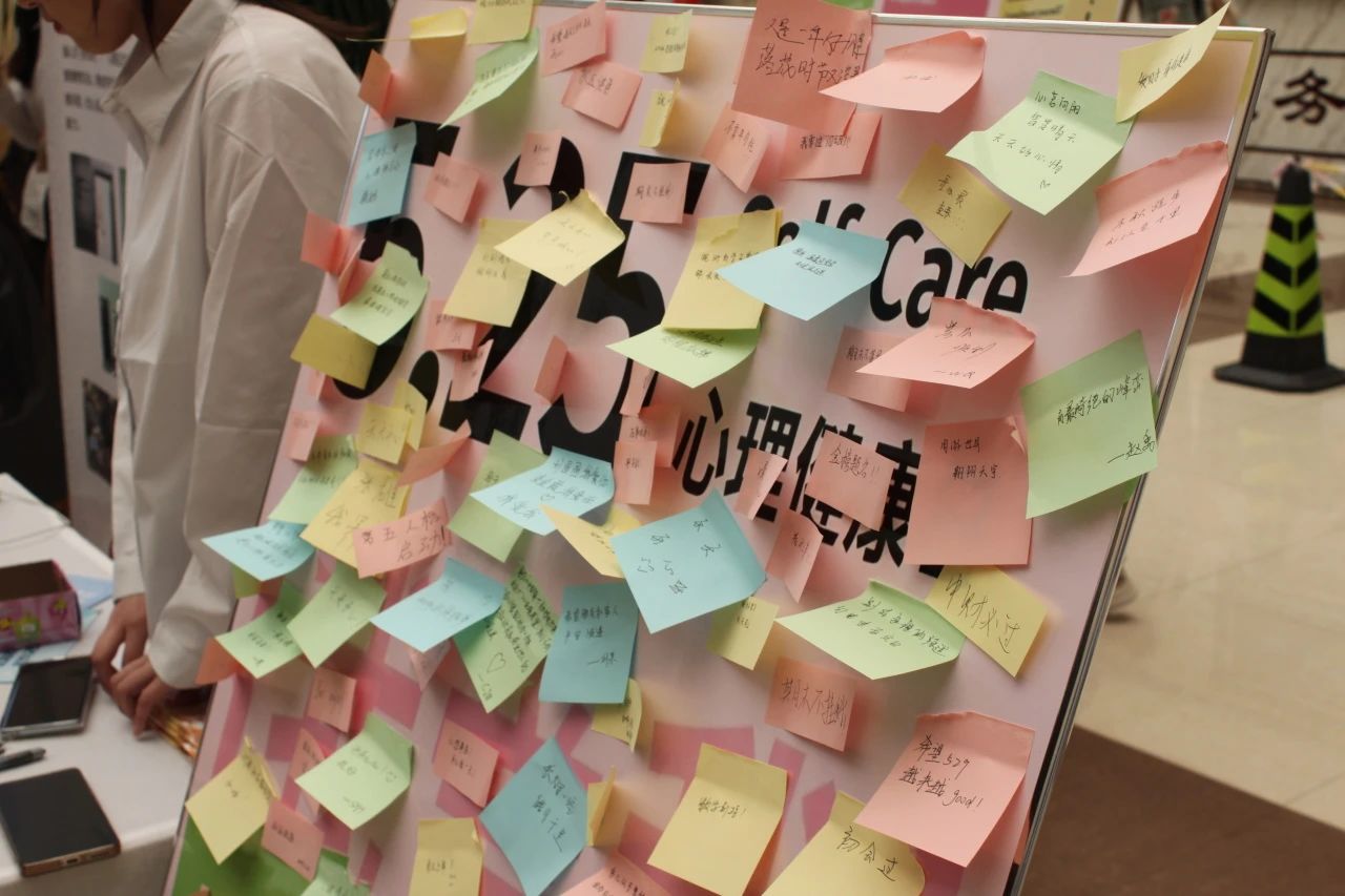 活动现场,气氛热烈非凡,同学们怀着浓厚的兴趣参与其中。大家纷纷拿起笔,在小小的便签上认真地书写着自己内心深处的情愫。有的同学写下了近期的快乐瞬间,字里行间洋溢着喜悦;有的则表达着对朋友亲人们的美好祝愿。他们写完后,小心翼翼地将便签贴在那面充满意义的展板上。不一会儿,展板就被五颜六色的便签贴得满满当当,仿佛一幅展现同学们丰富内心世界的绚丽画卷。每一张便签都承载着同学们的真情实感,它们汇聚在一起,形成了一道独特而温暖的风景线,让整个活动现场都充满了浓浓的人文关怀气息。