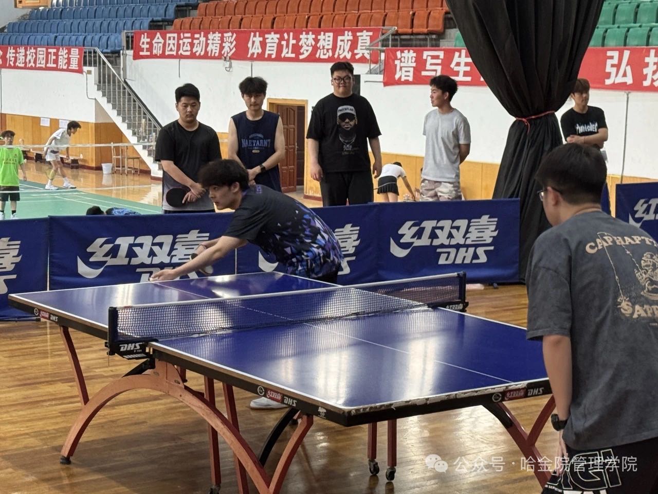 半决赛的硝烟还未完全散去,决赛的战鼓便即刻擂响。短暂的喘息间,管院的运动健儿们迅速“回满能量”,眼神里燃烧着坚定的火焰,仿佛在宣告“冠军,我们势在必得!”。他们手中紧握的球拍,恰似征战沙场的宝剑,寒光闪烁,蓄势待发。
