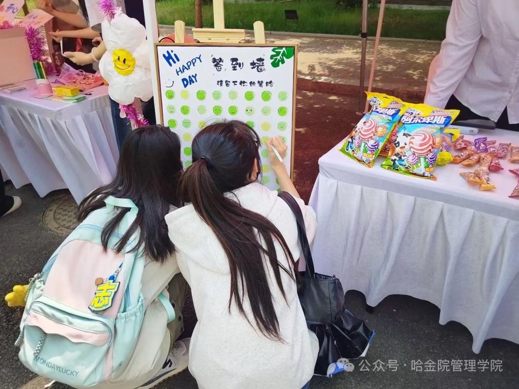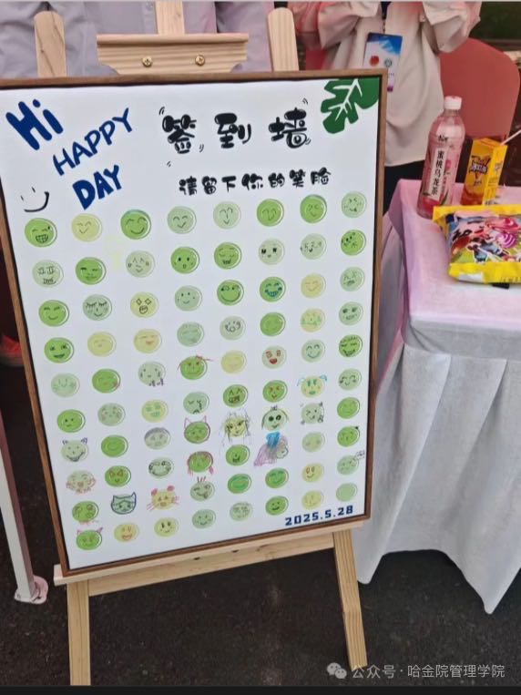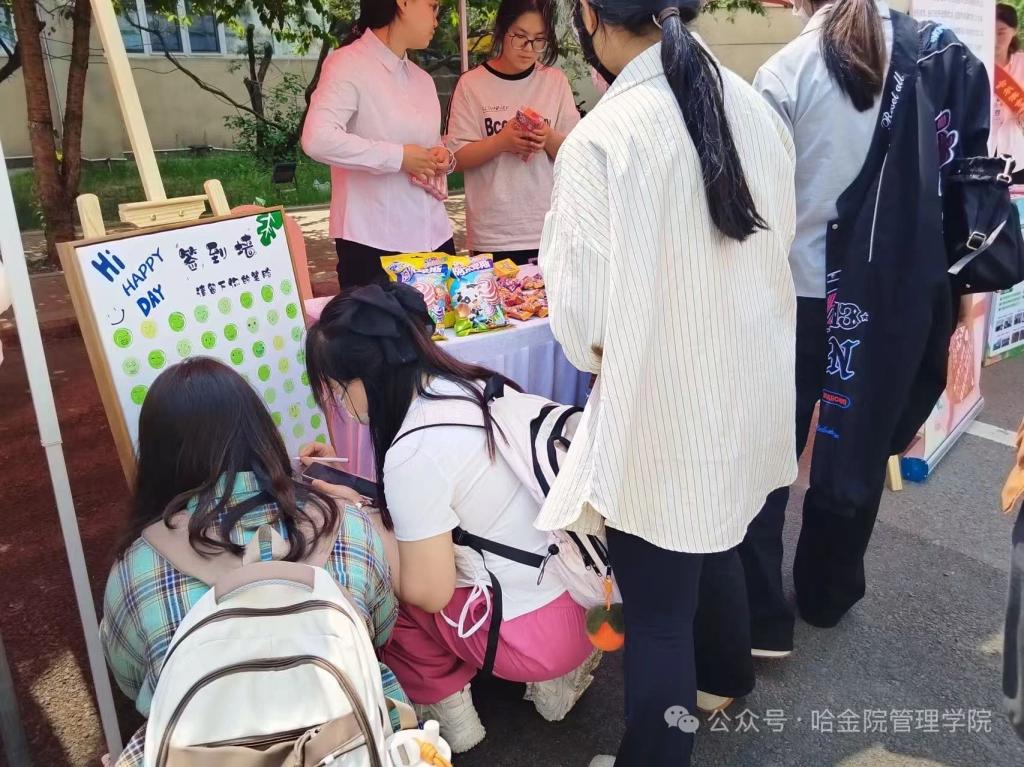 为加强大学生的心理健康教育工作,落实《哈尔滨金融学院2025年“阳光心理筑梦行动”暨“大学生心理健康教育节”实施方案》,管理学院积极响应我校大学生心理健康教育中心的号召,倡导学生关爱自我、关注心理健康,于5月28日打造了一场心灵疗愈盛宴。活动以“共绘笑脸墙”与“珠连心缘”两大主题展开,在一食堂和二食堂前分别设置了两个活动点,用充满创意的互动方式,引导同学们开启关爱自我、探索内心的奇妙旅程。