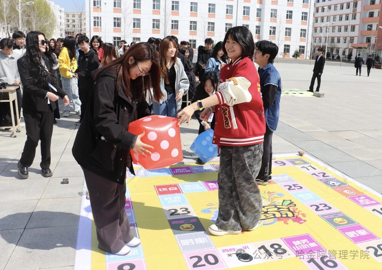 在“沙掷谜盒”环节中,同学们屏息凝神,将沙包投入到九宫格谜盒中,一击即中的激动时刻赢得了现场的阵阵喝彩;“超级大富翁”则将运气与智慧相结合,同学们通过掷骰子前进,或顺风顺水,或频频“踩雷”,新颖的游戏机制掀起了挑战热潮。