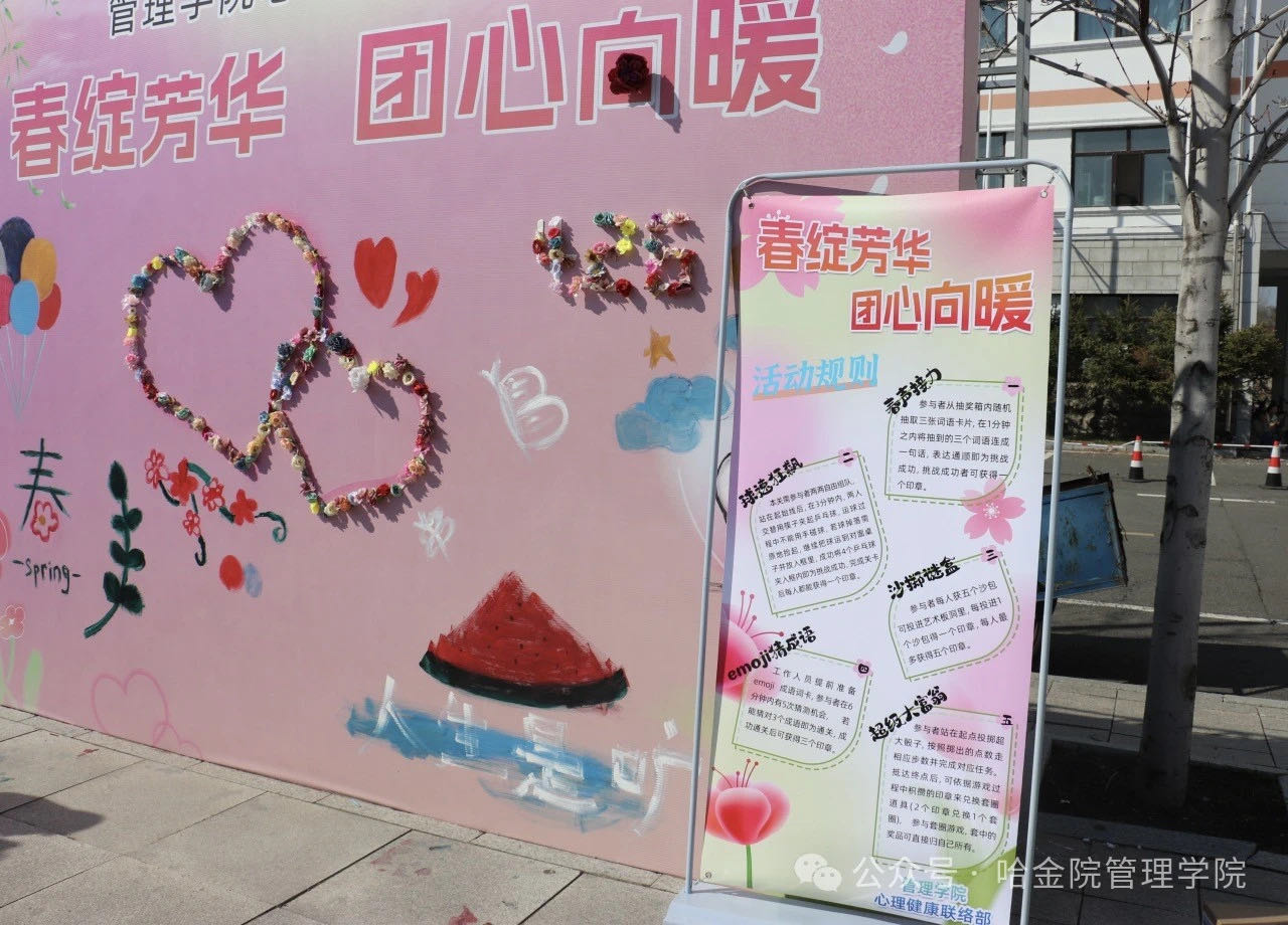 为深入贯彻落实心理健康教育理念,充分发挥春日自然环境的疗愈效能,挖掘学生的内在心理潜能并增强心理韧性。管理学院于4月26日13时在礼融广场成功举办“春绽芳华,团心向暖”主题心理团辅活动。此次活动以趣味互动为依托,以心灵关怀为核心,吸引了我院百余名师生热情参与,共同开启了一场别开生面的心灵之旅。