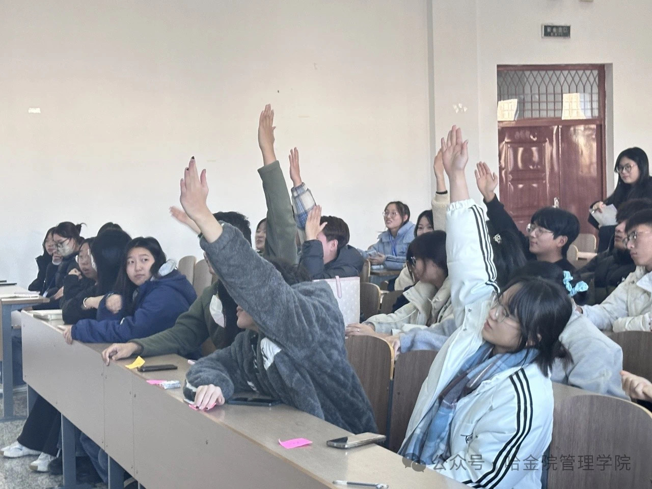 随后,活动进入第二部分--“心理知识竞答”。工作人员为参赛同学发放号码牌,接着,由两名工作人员分别讲述题目内容及对应的四个选项,当题目与选项展示完毕后,同学们迅速地举手抢答,并大声说出自己认为正确的答案,眼神中充满了期待和兴奋,教室里气氛瞬间变得紧张而热烈,学生们个个热情高涨,积极参与,争先恐后地表达自己的观点,展现出了无限的活力与创意,欢声笑语中尽显青春风采。