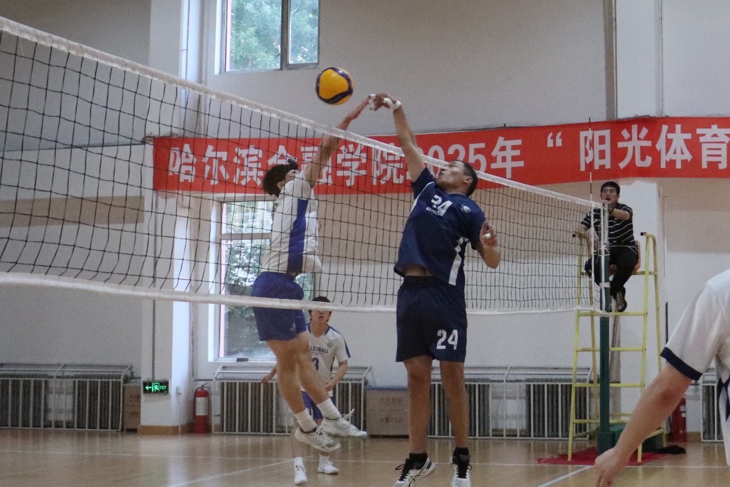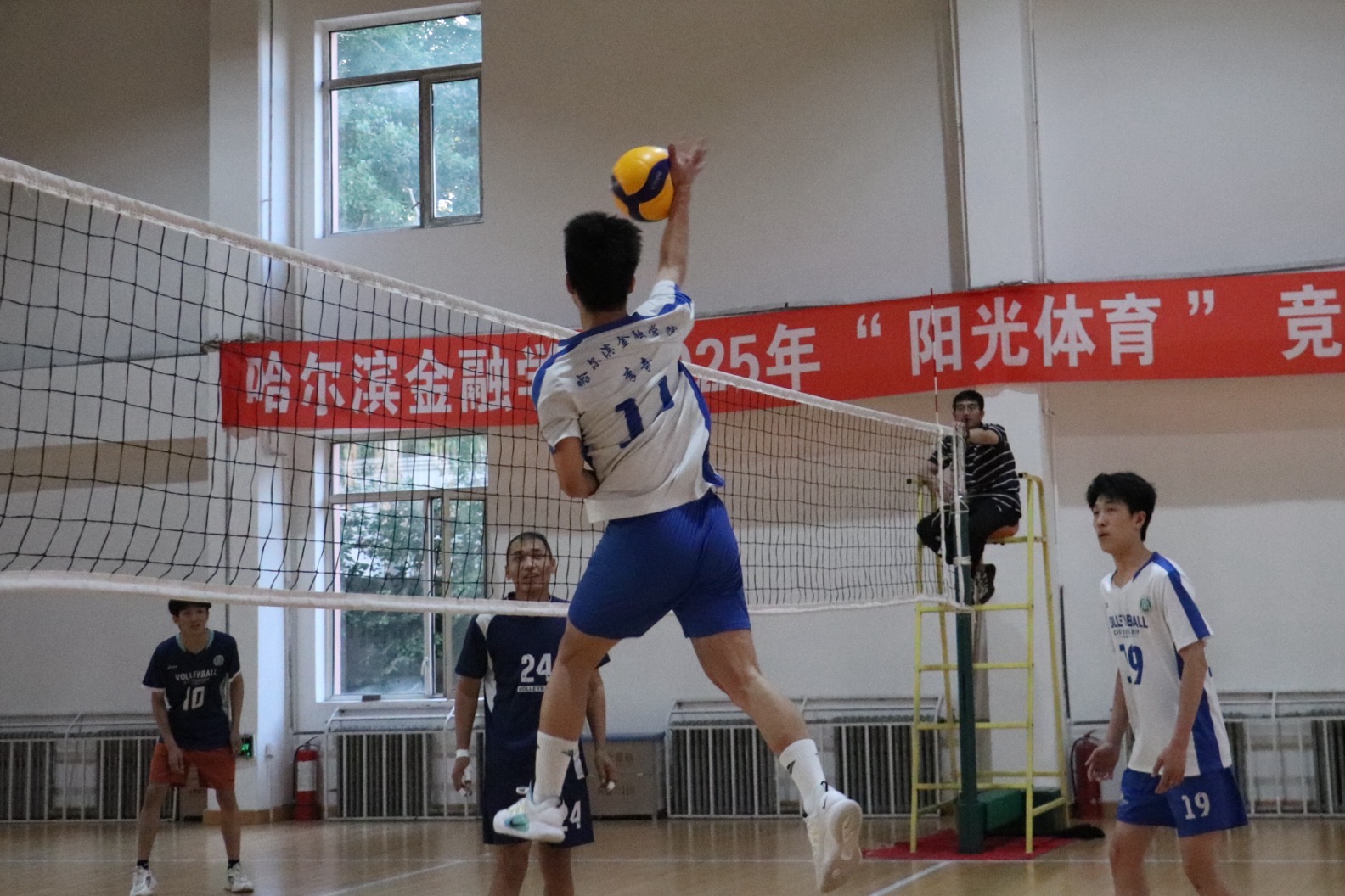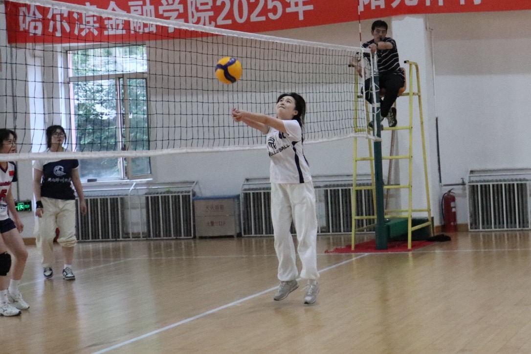 女排决赛在管理学院二队与金融与贸易学院一队之间激烈展开。比赛哨声落下,管理学院二队凭借有序的攻防组织,牢牢把控节奏。首局比赛中,队员们凭借出色的弹跳力与精准的扣杀技巧频频得分,瞬间点燃全场热情。
