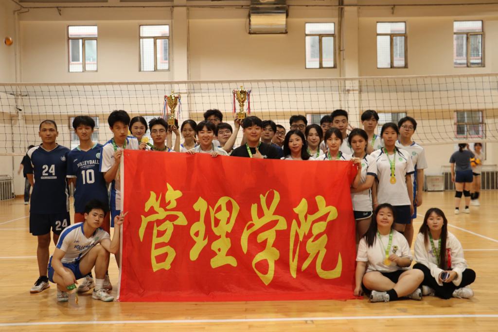 排球在空中划出的优美弧线,最终汇聚成管理学院双冠荣耀的璀璨勋章。赛场上,队员们用每一次飞身扑救诠释着“不到最后一刻绝不放弃”的竞技精神;