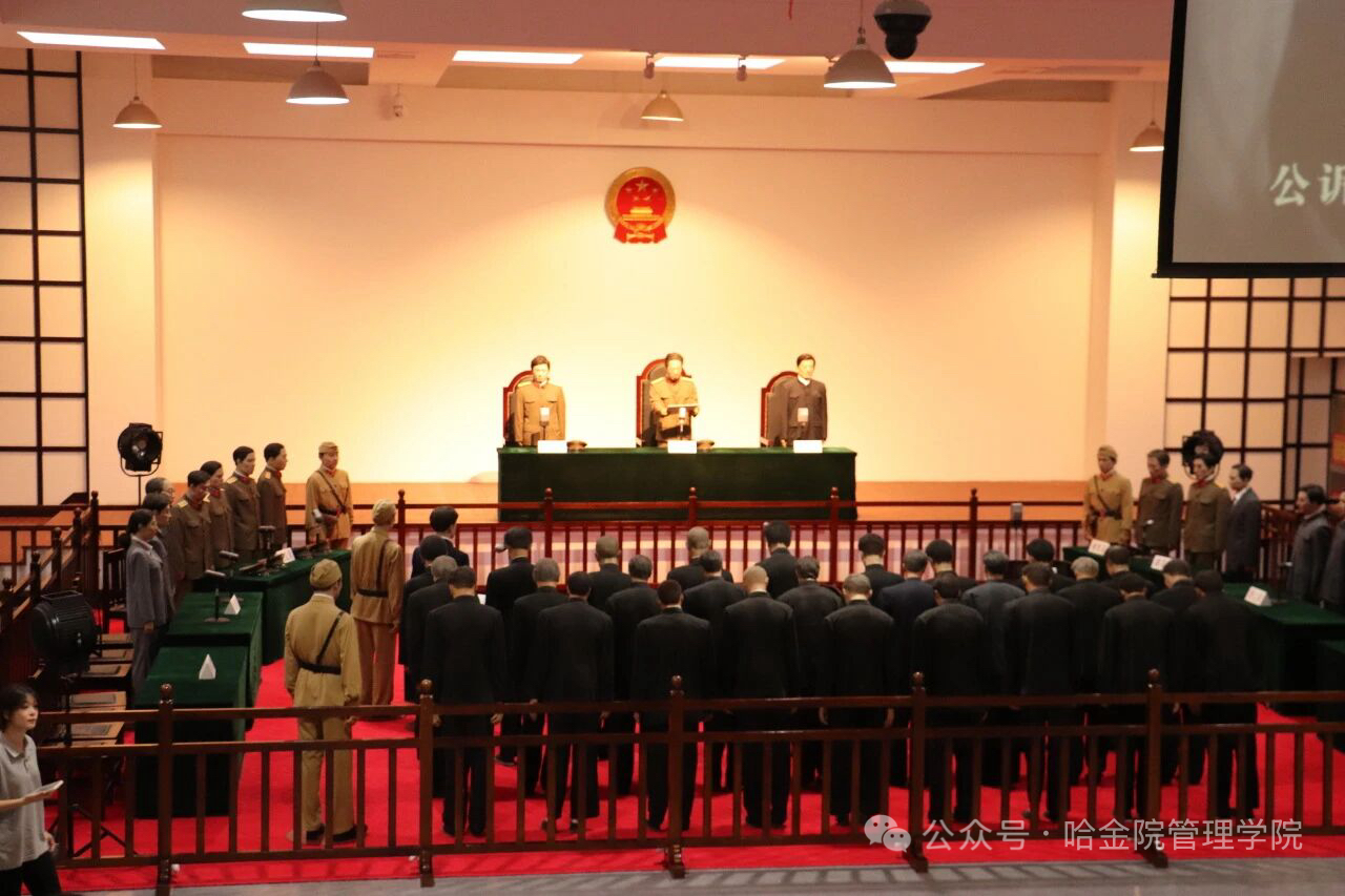 实践团转赴沈阳审判日本战犯法庭旧址陈列馆。步入1956年的历史现场,锈蚀的手铐、庭审记录原件和黑白影像资料,将正义审判具象呈现。师生驻足于模拟法庭展厅,通过交互设备“旁听”庭审,感受国际法理与中国意志的交融碰撞。