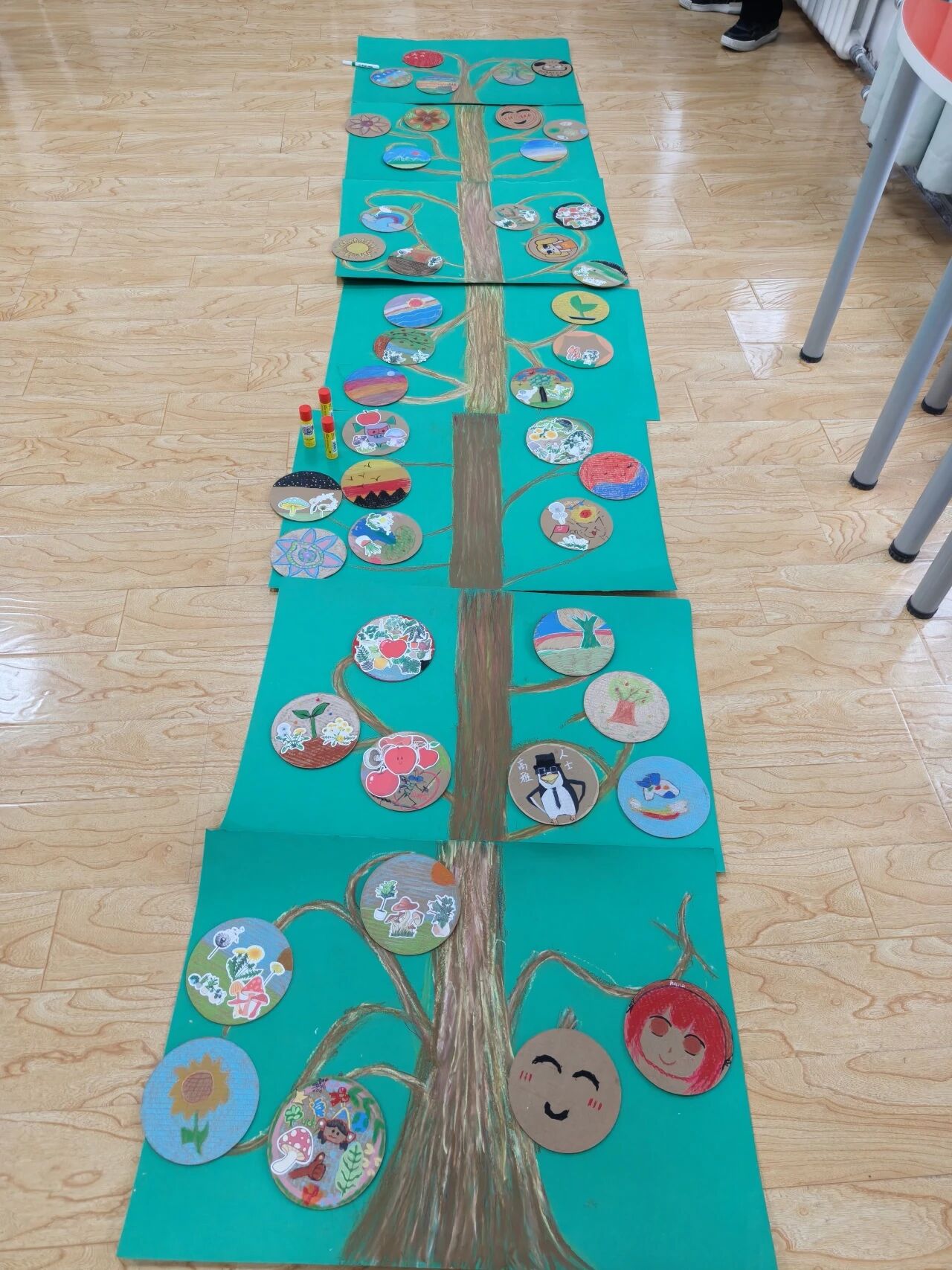 集体创作环节则是协作与共鸣的亮点时刻。同学们将“树轮”艺术作品嵌入大树轮廓卡纸,或按成长时序铺展,或依情绪光谱分区,以画笔、贴纸共同晕染枝叶的鲜活、果实的丰盈。当各组风格迥异却同样饱含生命力的“生命之树”集体作品最终呈现时,个体的心灵印记与团队的创作智慧完成了一次温暖的共生。