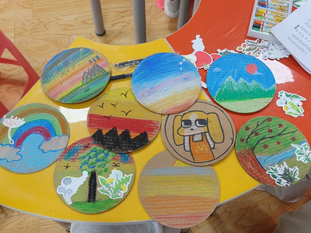 活动开篇,主持人以诗意化的引导语搭建起“生命成长”的情感场域,让同学们在松弛的氛围中与“种子萌发为大树”的意象深度联结,为后续创作筑牢心灵基底。个人创作环节中,大家手握圆形画纸与画笔,以色彩的跃动、线条的起伏、图案的隐喻,雕琢专属“树轮”——明丽色块是青春锋芒的镌刻,曲折线条是成长褶皱的定格,每一幅作品都是内心情感的绽放。