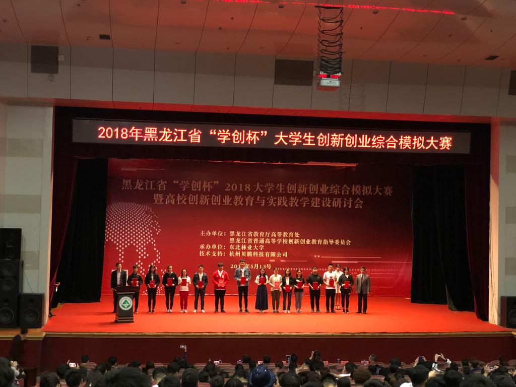 5月13日,2018年黑龙江省高校“学创杯”创新创业综合模拟大赛在东北林业大学举行。该赛事由黑龙江省教育厅高教处、国家级实验教学示范中心联席会、黑龙江省普通高等学校创新创业教育指导委员会主办,杭州贝腾科技有限公司承办,共有来自省内66所高校,193支队伍参与了本次大赛,参与师生近千人,我院共派出5支队伍参赛。