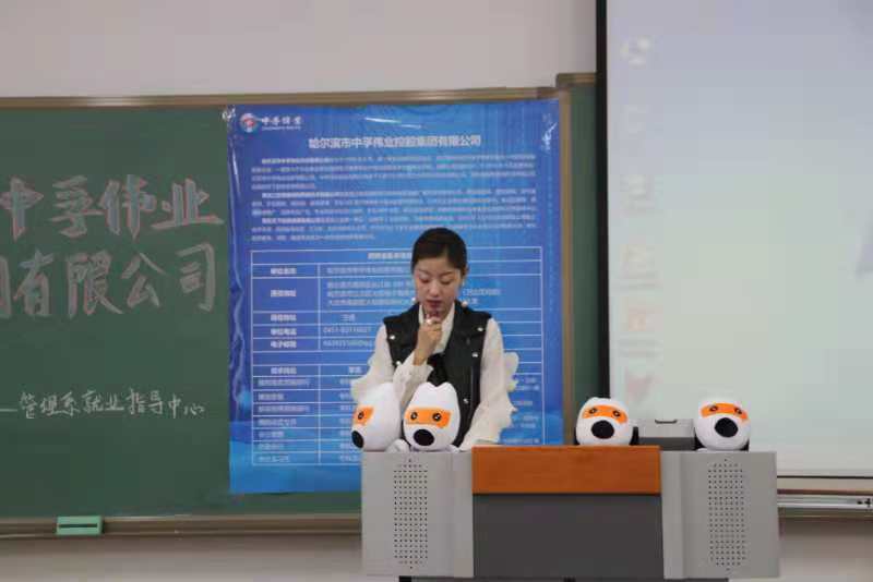 随着互联网的蓬勃发展,各大互联网企业也呈现出欣欣向荣的发展趋势,社会上对于科技型人才的需求也是有增无减。对此,管理系携手哈尔滨市中孚伟业控股集团于2018年11月12日在新教203召开了专场招聘宣讲会,管理系辅导员郭爽老师出席此次招聘会。