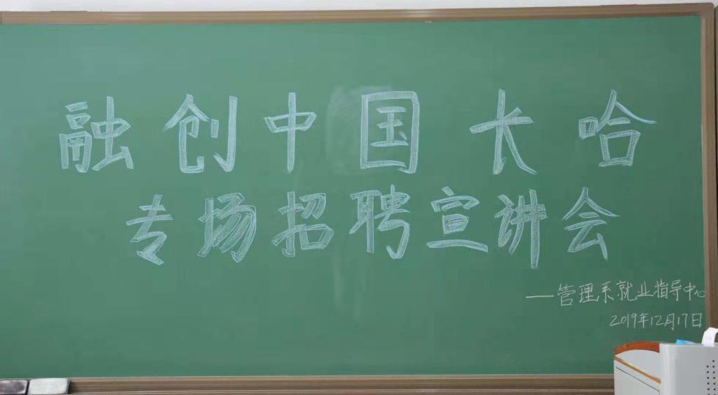 随着毕业生数量的逐年增多,毕业生就业问题也浮现在了人们眼前。各公司企业对人才的综合素质要求越来越高,择业就业也随之变成了一大难题。为缓解这一问题,管理系携手融创中国长哈公司于12月17日在综合楼114举办了专场招聘宣讲会,管理系辅导员卞超凡老师出席此次招聘会。